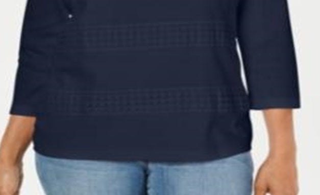 Ask a question about Karen Scott Women's Square Neck Lace Stripe Top Blue Size Medium