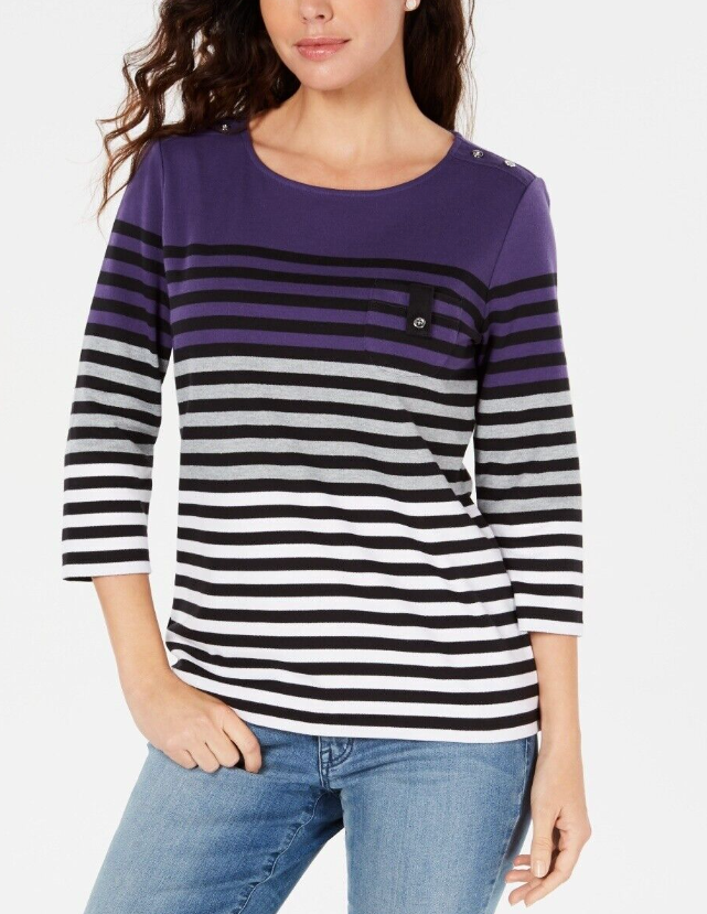 Karen Scott Women's Striped Colorblocked Top Purple Size Petite Medium