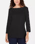 Karen Scott Women's Studded Boat Neck Cotton Top Black Size Petite Small
