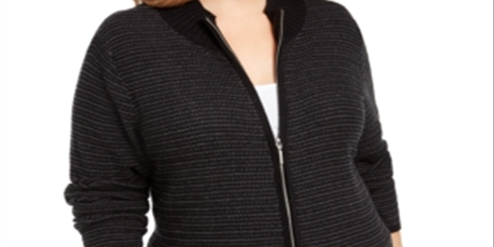 Karen Scott Women's Textured Zip Front Cardigan Black Size 1X