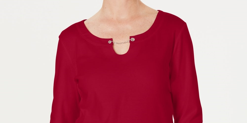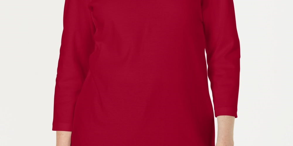 Karen Scott Women's Three Quarter Sleeve Top Red Size Medium