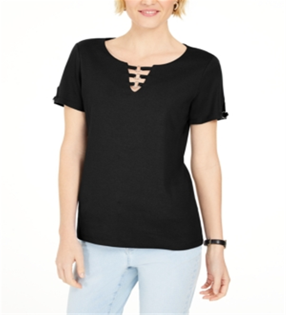 Karen Scott Women's Triple Ring Cutout Top Black Size Small