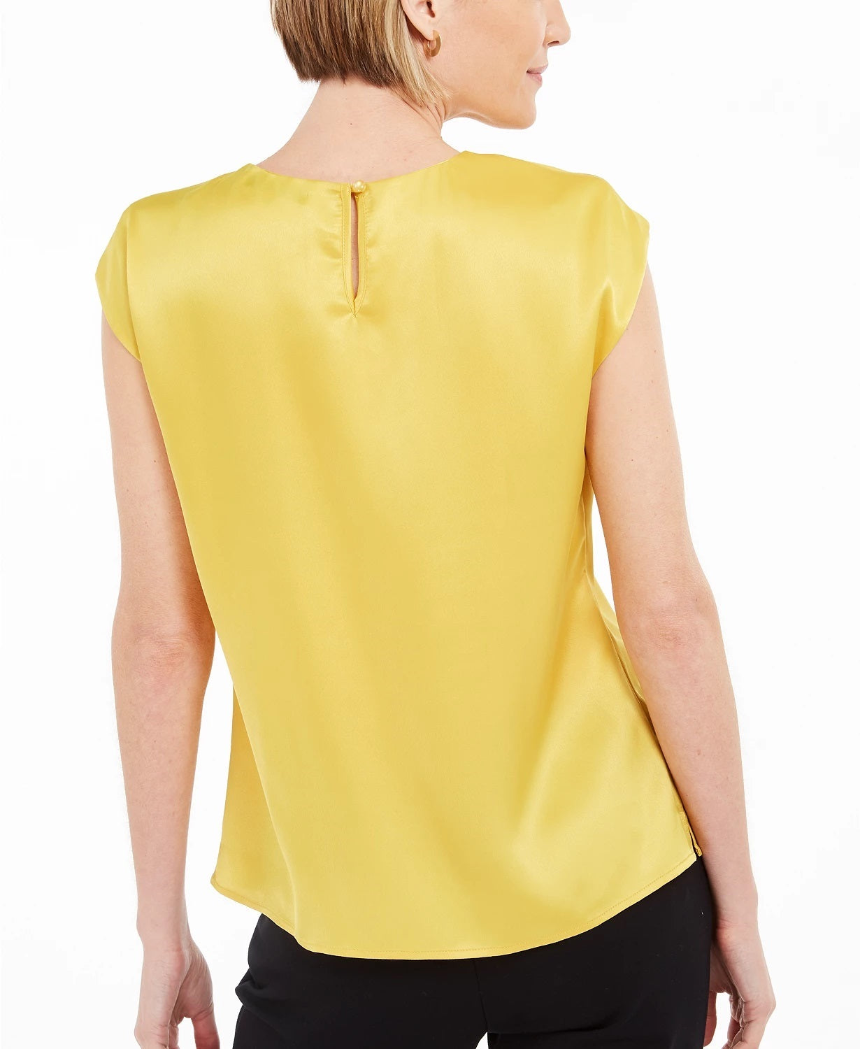 Kasper Women's Cap Sleeve Jewel Neck Peasant Top Yellow Size Small
