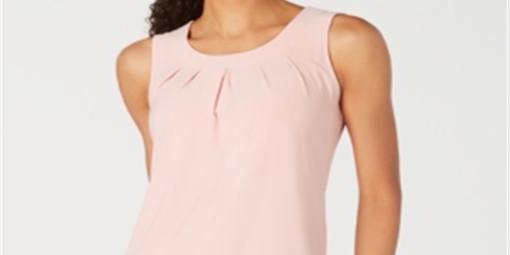 Kasper Women's Pleated Neck Sleeveless Top Pink Size Large