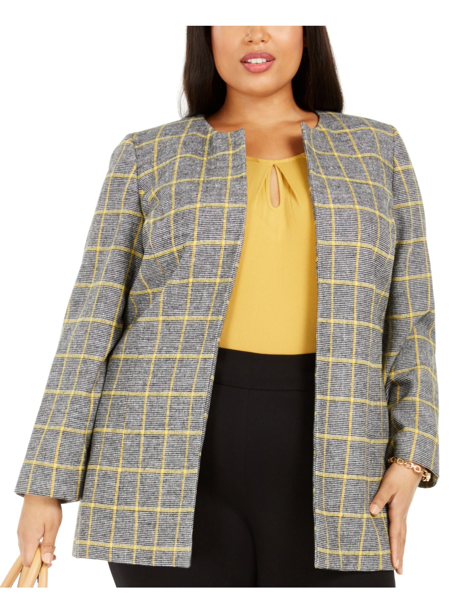 Kasper Women's Plus Open Front Plaid Jacket Yellow Size 14W