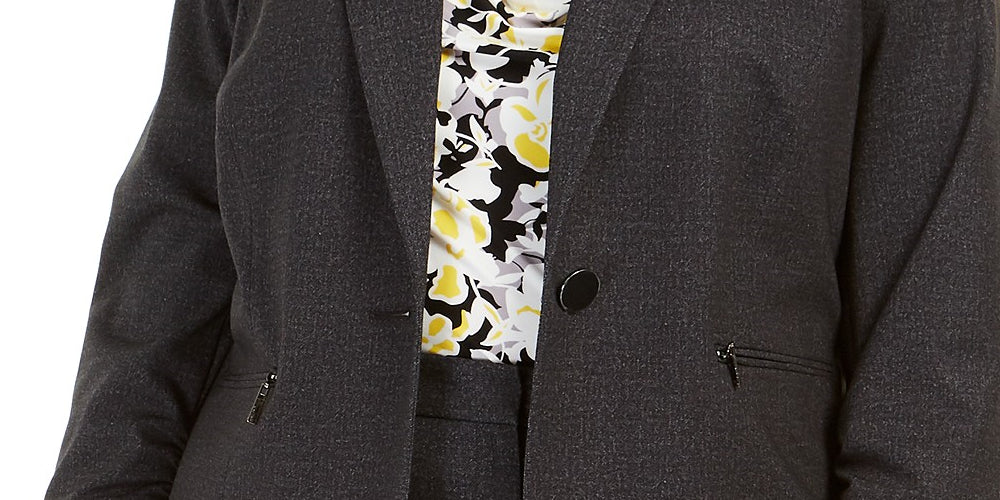 Approx. length: 25"|Notch lapels; one-button closure|Shoulder pads|Zip pockets at front|Ruched 3/4-sleeves|Lined