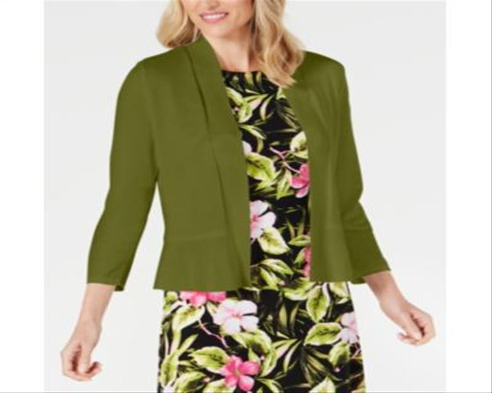 Kasper Women's Ruffle Hem Shrug Green Size Petite