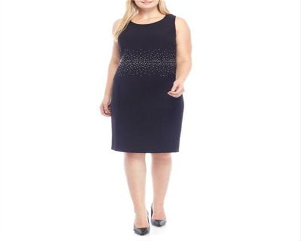 Kasper Women's Sleeveless Jewel Neck Knee Length Sheath Dress Black Size 24W