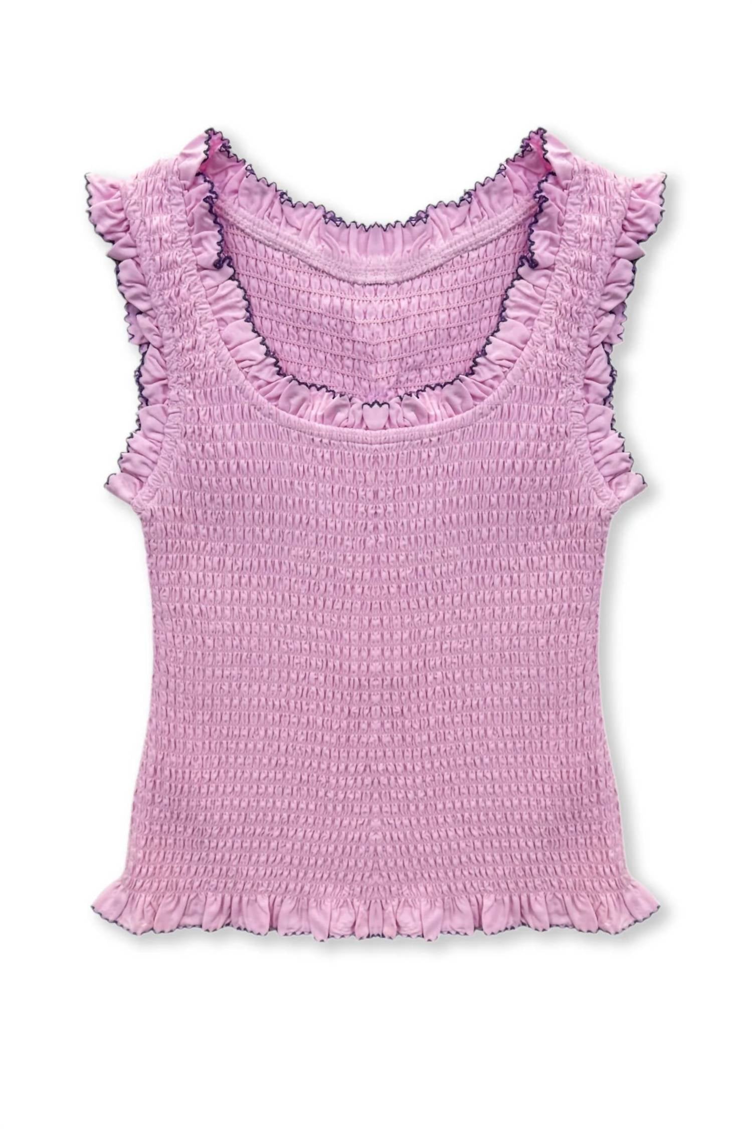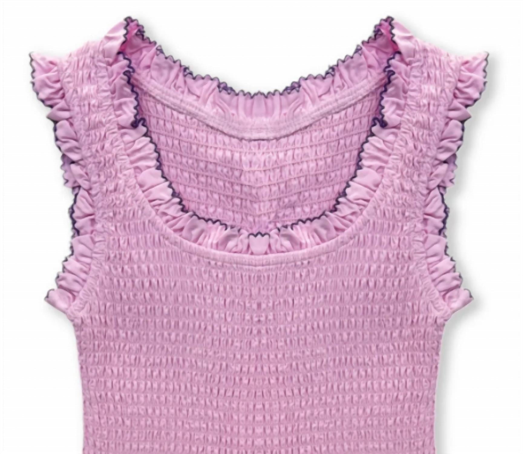 Fit, fabric and functionality. This tank top checks all the boxes. Introducing the Women's Helena Tank by Katie J NYC, a stylish addition to any wardrobe with its sleeveless design and eye-catching smocked bodice. Crafted entirely from luxurious viscose, this full-length tank top offers a flattering scoop neck and comes in a charming baby pink hue. Closure is seamless with a convenient pull-on style, exuding effortless elegance perfect for summer vacations. Care: Dry clean only. Available in Junior Sizing: XS, SM, MD, LG.