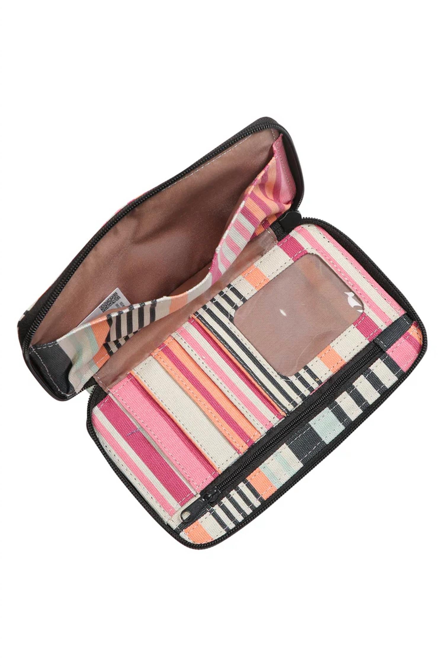 Enhance your accessory collection with this stylish wallet, expertly crafted to blend fashion and practicality. The multiple compartments provide easy organization for your cards and cash.The Go Time Phone Wallet has a detachable cross-body strap and acts as a bi-fold wallet with one main compartment with zipping around closure, an internal zip pocket, and multiple internal cash, card, and ID slots. Dimensions: 7” x 4” x 1”. Cross body strap length: 58". 12oz cotton canvas.