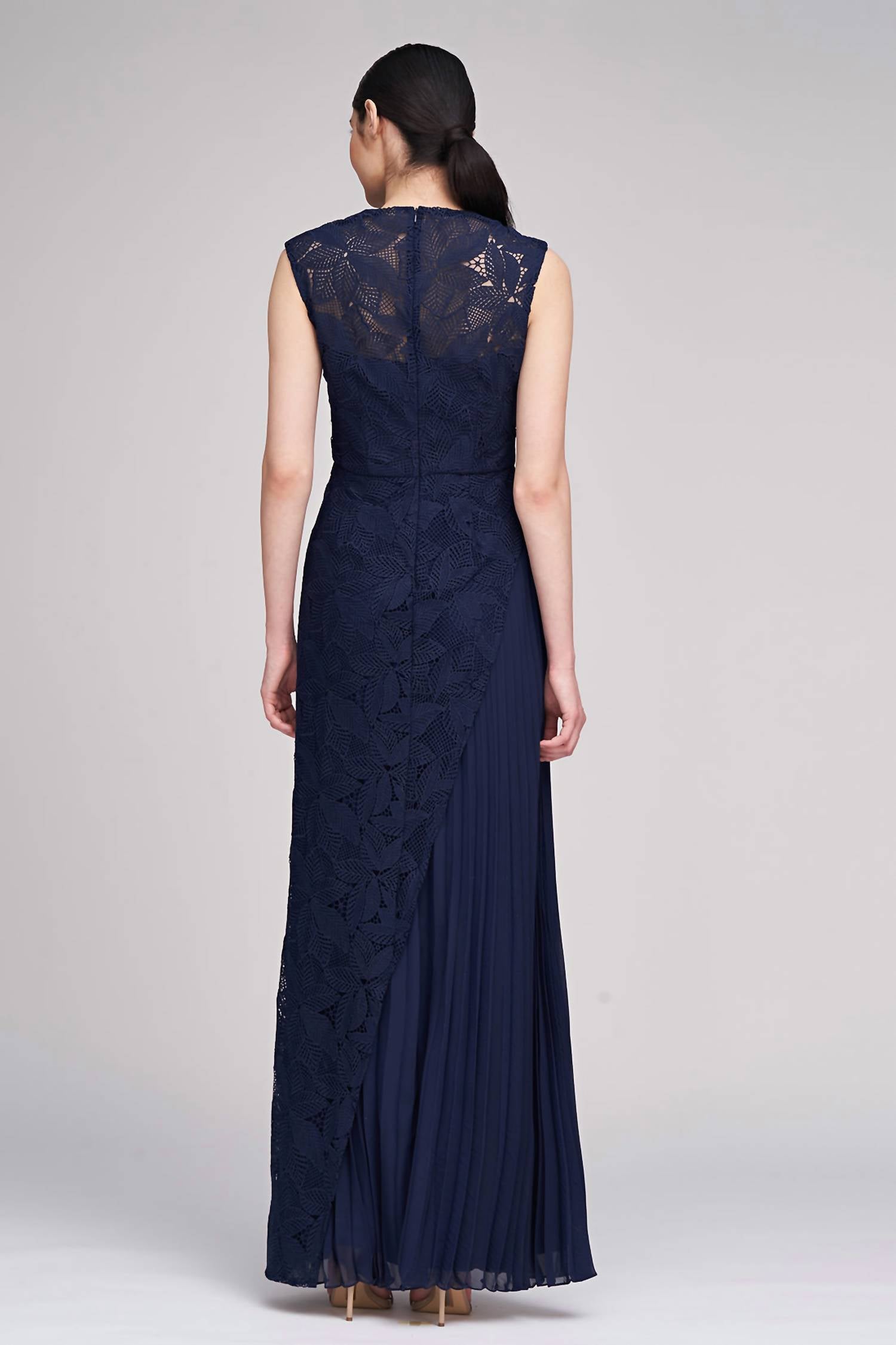 The Kay Unger Women's Dianna Gown in Dark Midnight is a textured A-line maxi dress perfect for a maximalist vacation look. Featuring a V-neck with short sleeves, this gown emphasizes elegance with its sleek silhouette. Closure: Pull-on style for convenience. Ideal for women seeking a standout summer ensemble. 100% Polyester