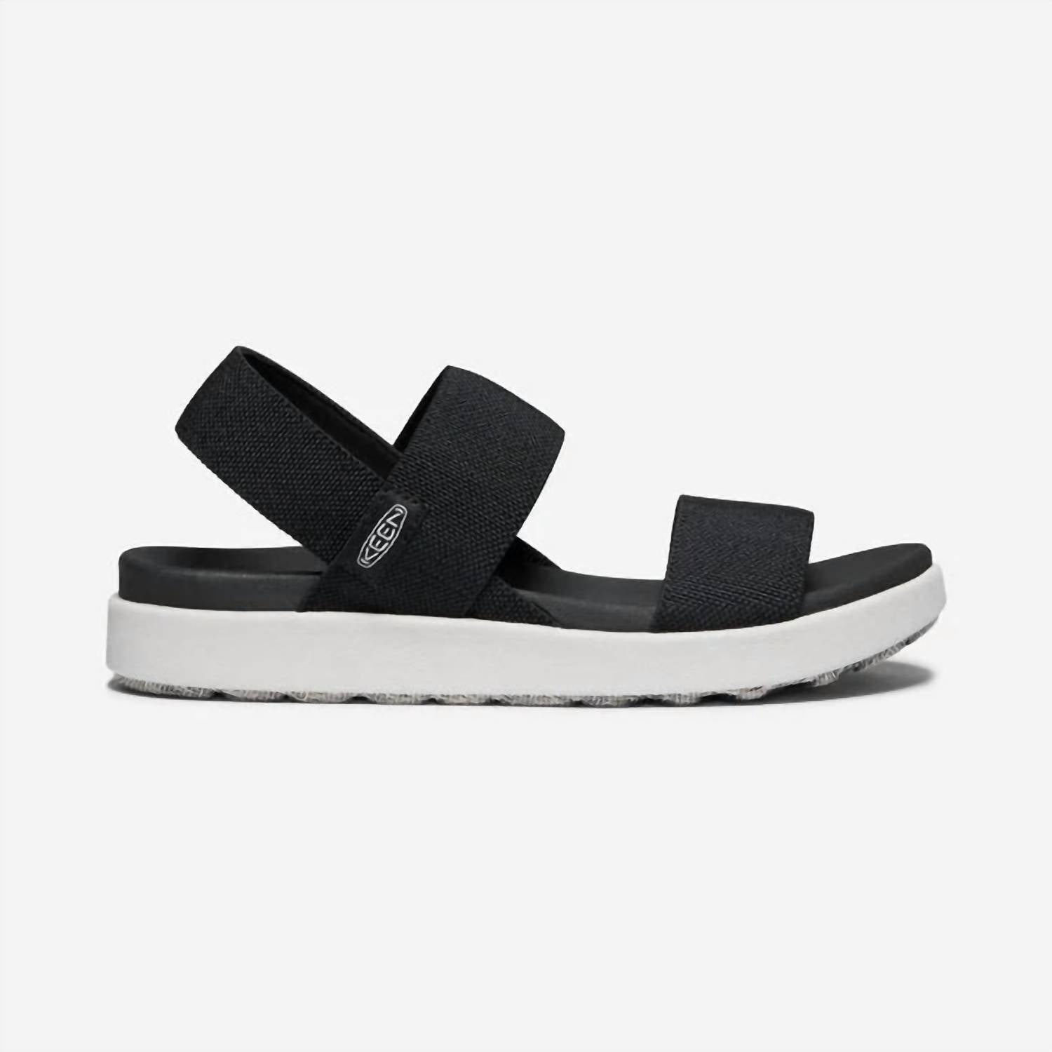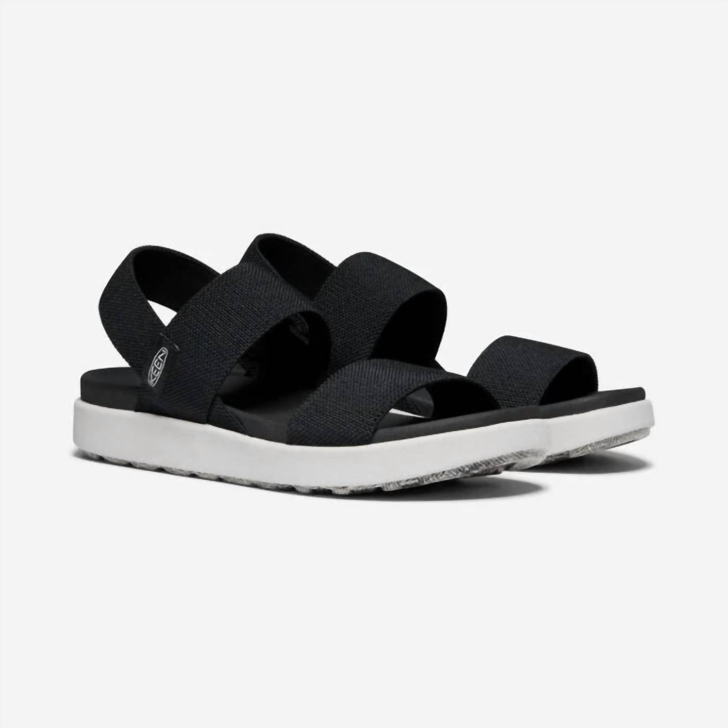 Classicly cute and all-day-wearable. We love this sandal. Step into comfort and style with the Women's Elle Backstrap Sandal by Keen, perfect for your summer vacation wardrobe. These minimalist sandals feature a recycled PET plastic stretch gore upper and a higher-traction rubber outsole for stability. The EVA footbed with arch support and compression-molded EVA midsole ensure all-day comfort. Care for your sandals by gently brushing with a soft, damp sponge and air drying away from heat.