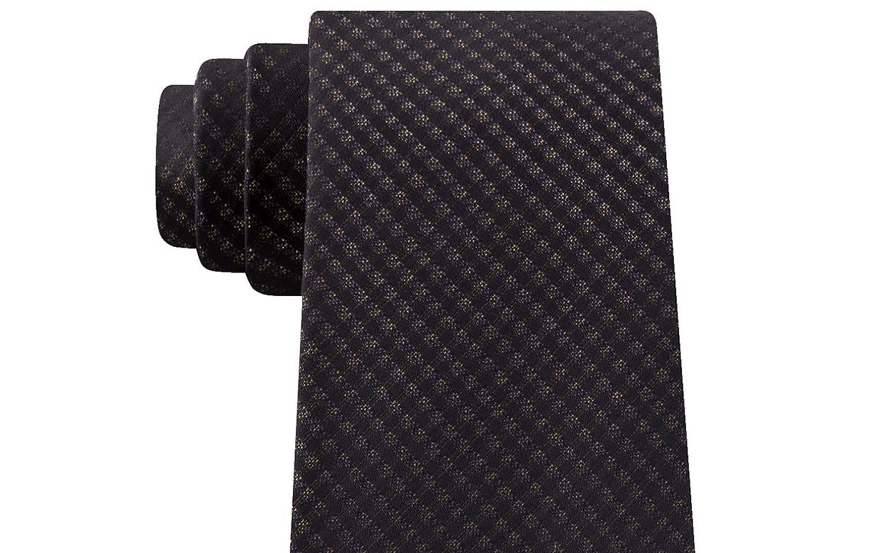 Kenneth Cole Reaction Men's Slim Fine Metallic Grid Tie Black Size Regular