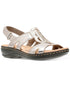 Round-toe slip-on T-strap slingback sandals with stay-put closure at back strap| Leather upper; manmade sole| Imported
