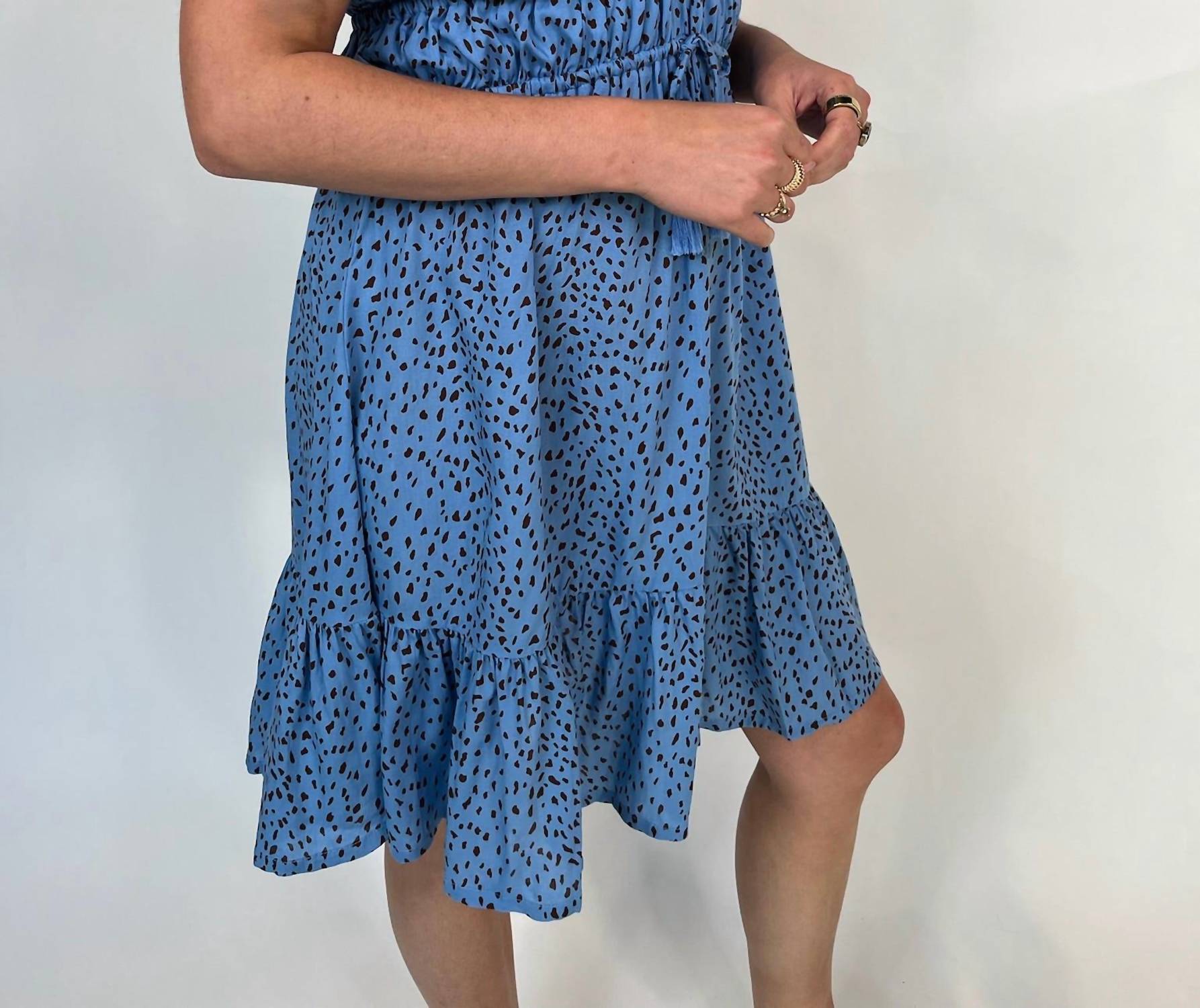 Introducing the Khush Manoa Breeze Mini Dress in captivating Granelli Blue, a summer must-have for your vacation wardrobe. This stylish dress features cap sleeves and a deep V-neckline, with an elegantly tailored empire waist for a flattering silhouette. Crafted from 100% Rayon and made in Bali, its pull-on closure and chic front tie detail make it effortlessly versatile. Care instructions: Hand wash cold.