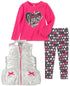 Kids Headquarters Little Girl's 3 Pc Metallic Vest Love Top & Printed Leggings Set Pink Size 6X