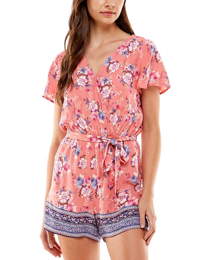 Airy with flutter sleeves and an elasticized waistband| this Kingston romper is a one piece that makes life feel effortless.| Approx. inseam; 3| Surplice neckline with snap closure; pull-on style| Elasticized and belted waistband| Short flutter sleeves
