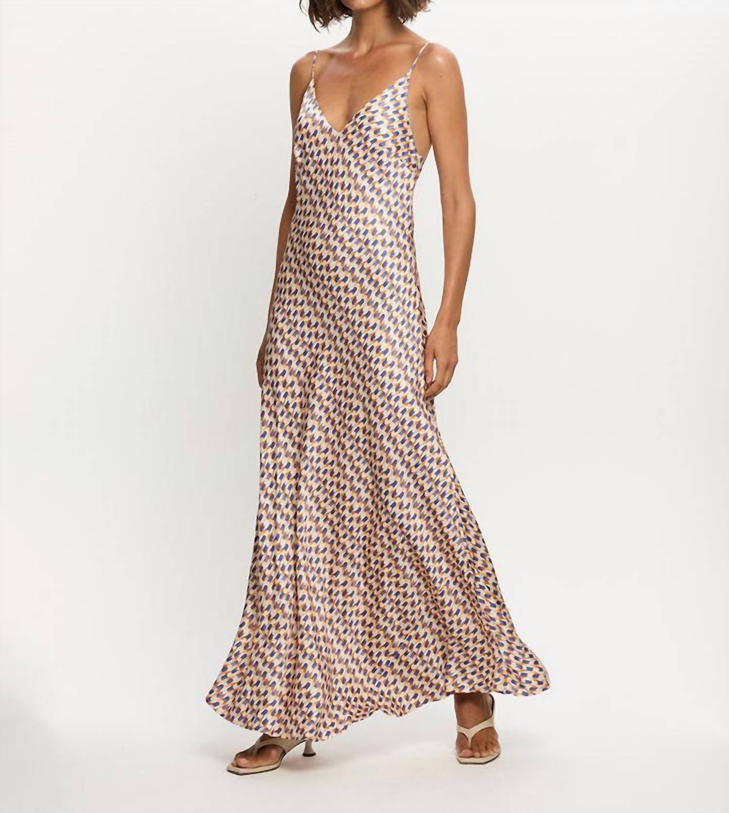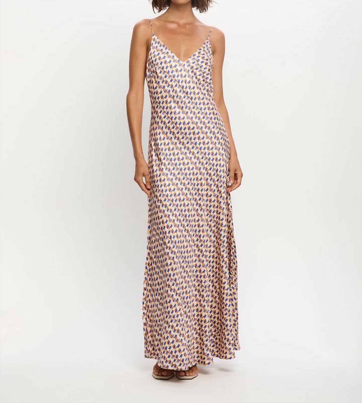 Who doesn't love a good maxi dress? This one you'll be reaching for season after season. This slip dress features a full-length silhouette with a deep V-neckline and delicate shoulder straps for a refined look. Designed on the bias for a flattering drape, it includes a lined front bust, an invisible side zip for a seamless finish, and a softly flared hem for graceful movement. Made of 50% Lenzing Ecovero and 50% viscose.