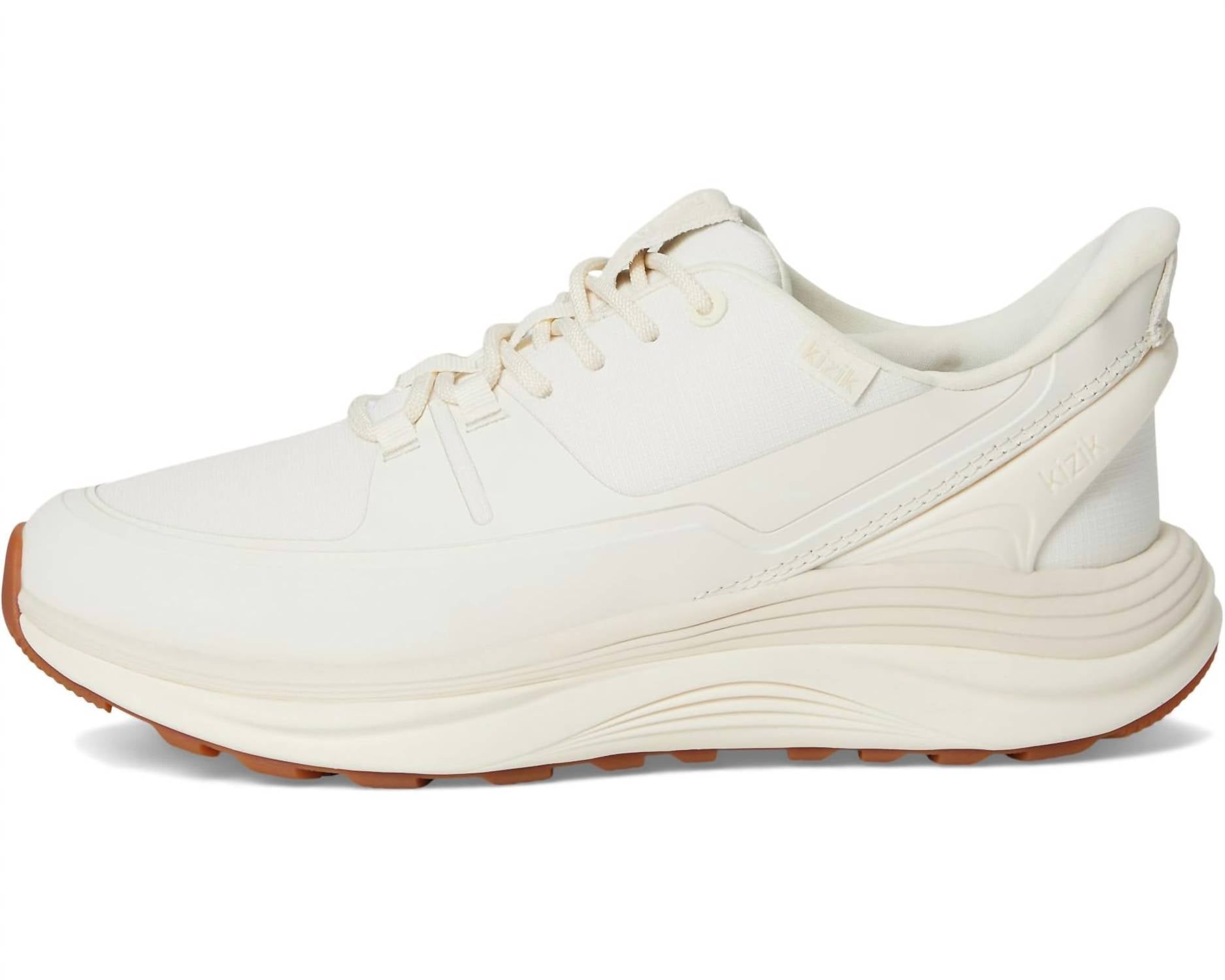 Discover the KIZIK™ Women's London AT Walking Shoe in Pristine, expertly designed for all-terrain adventures with hands-free convenience. These athletic shoes are crafted from a mesh upper with a polyester lining and a rubber insole, ensuring durability and comfort with their water-resistant and scuff-proof finish. Featuring a lace-up closure and a high-abrasion rubber outsole, these shoes provide support and a reliable step-in experience thanks to the external flex arc. The double-layered midsole with luxurious foam absorbs impact, while an extra-soft layer cradles your foot, enhanced with a modest heel height of 1 inch.