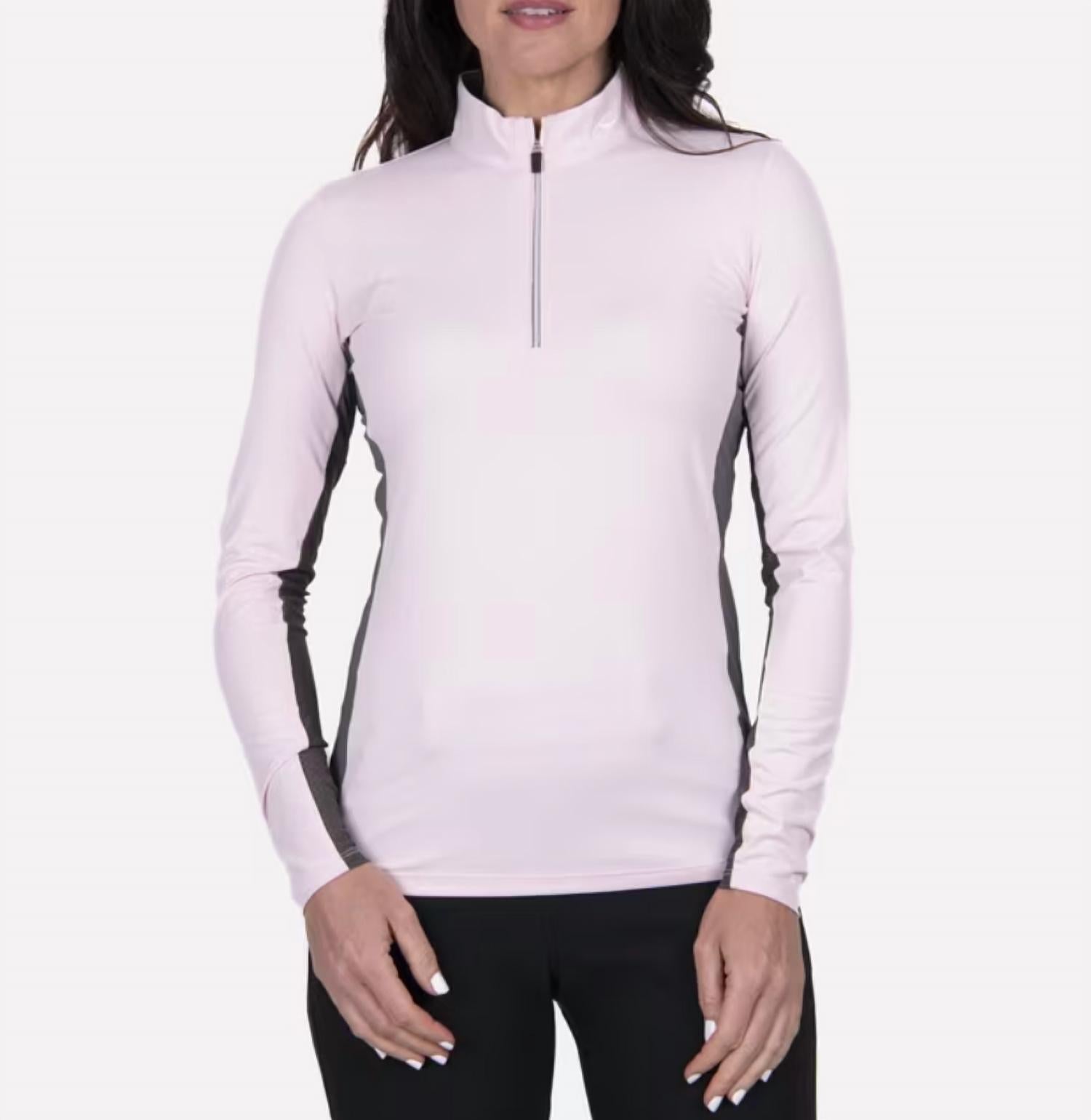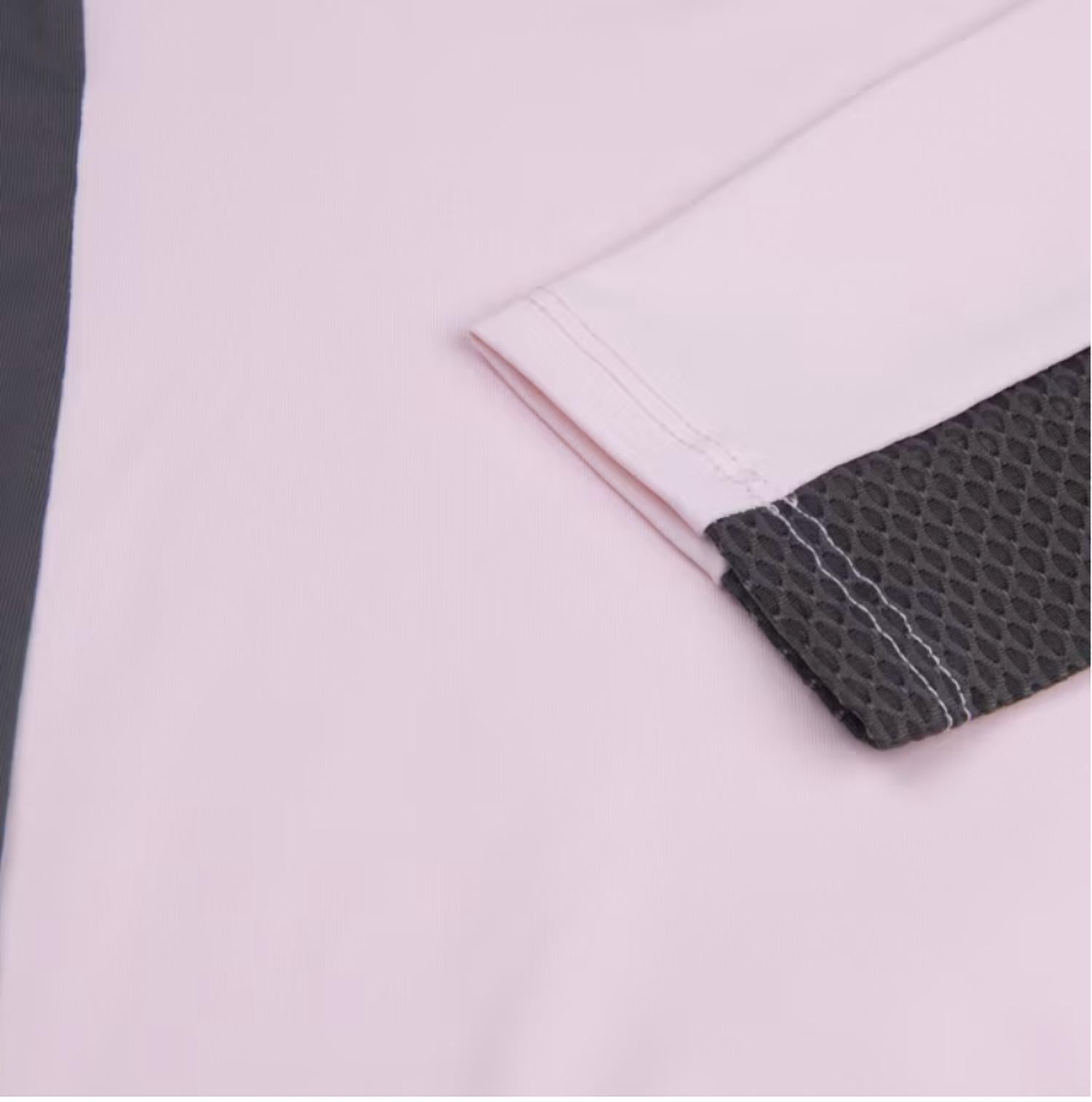 A long sleeve top you can wear with denim, skirts, well... just about anything! Elevate your golf game with the KJUS Sunshine Sport Half-zip Top in Rose Quartz/Iron, perfect for sunny days on the course. This long sleeve sport-fit top features a mockneck design and a convenient zip closure, crafted from 88% Polyester and 12% Elastane for superior breathability and UV protection (UPF 50+). Enjoy quick-drying comfort and additional ventilation with mesh inserts on the arms. Care for it easily with machine wash at 30º, tumble dry on low, and low-temperature ironing, but avoid bleach and dry cleaning.