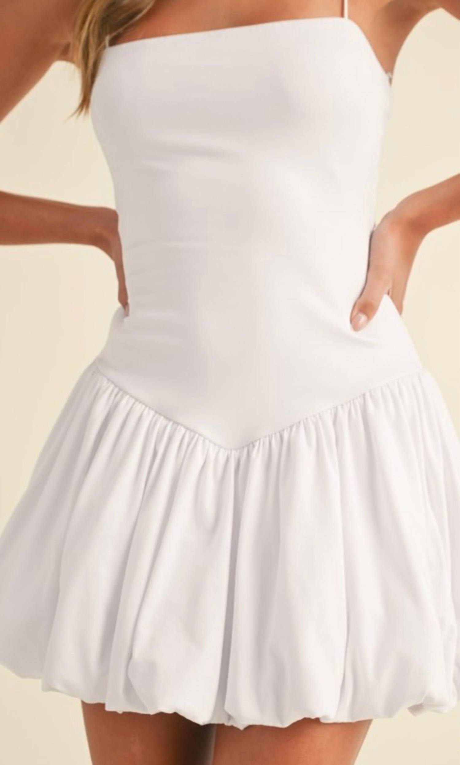 The kind of easy and flattering dress you'll be reaching for all season long. Elevate your evening look with the Sleeveless Chevron Drop Waist Balloon Skirt Mini Dress by Klesis, designed for the modern woman. Featuring elegant spaghetti straps and a flattering drop waist, this white mini dress seamlessly flows into a flared balloon skirt, demonstrating a fit and flare silhouette. Crafted from a blend of 95% Polyester and 5% Spandex, it offers a buttery-soft feel and pull-on closure for effortless styling. Care: Machine wash and line dry to maintain its pristine condition.