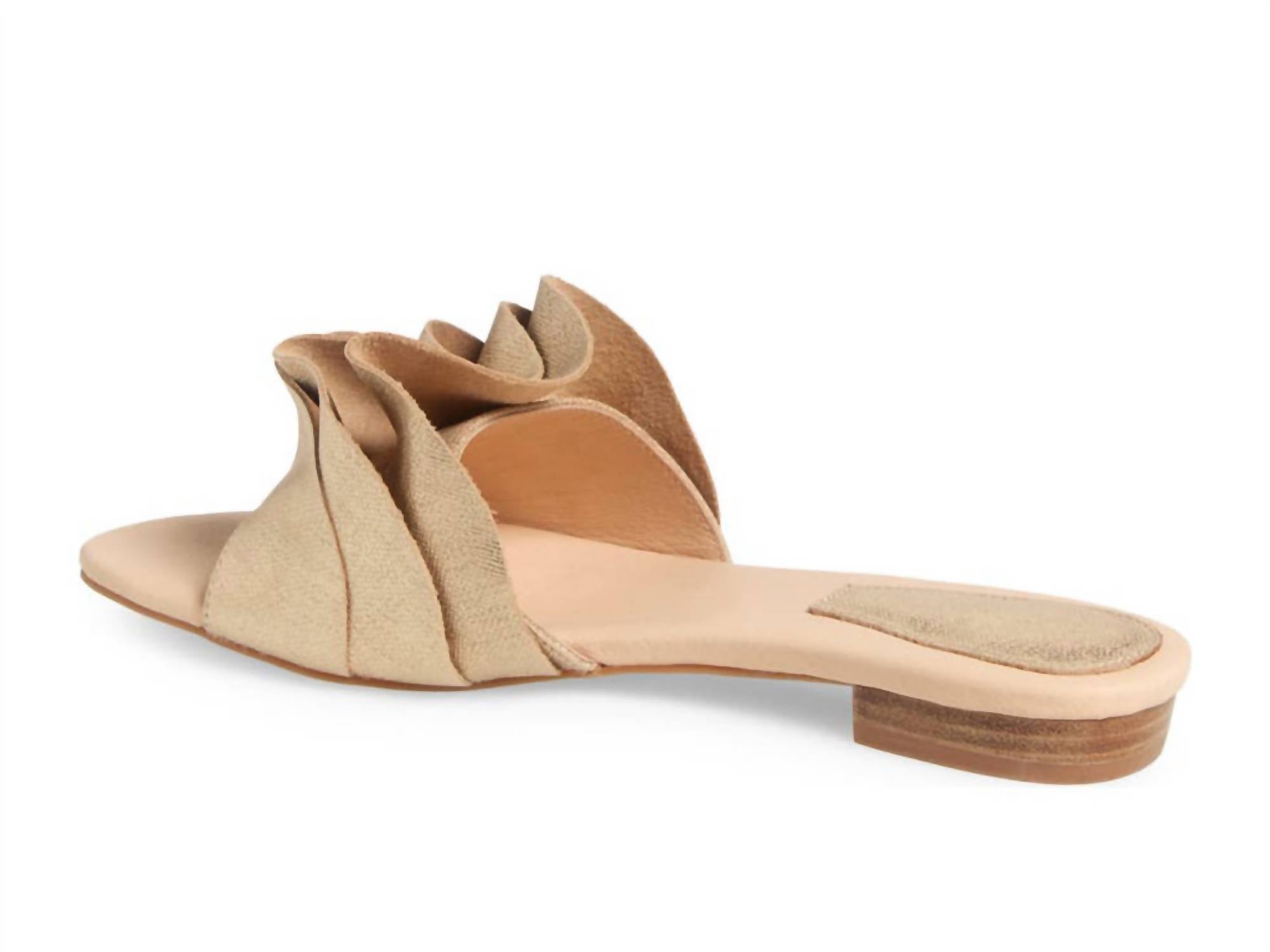 This sandal will take you from brunch to dinner and everything in between. This Ruffled Low Heel Sandal combines feminine charm with everyday comfort. Featuring a delicate ruffled leather upper, it’s designed with a modest 1/2" heel for easy wear. The leather lining and padded insole provide added cushioning, while the durable rubber outsole ensures steady steps all day long—making it a stylish and practical choice for any occasion.