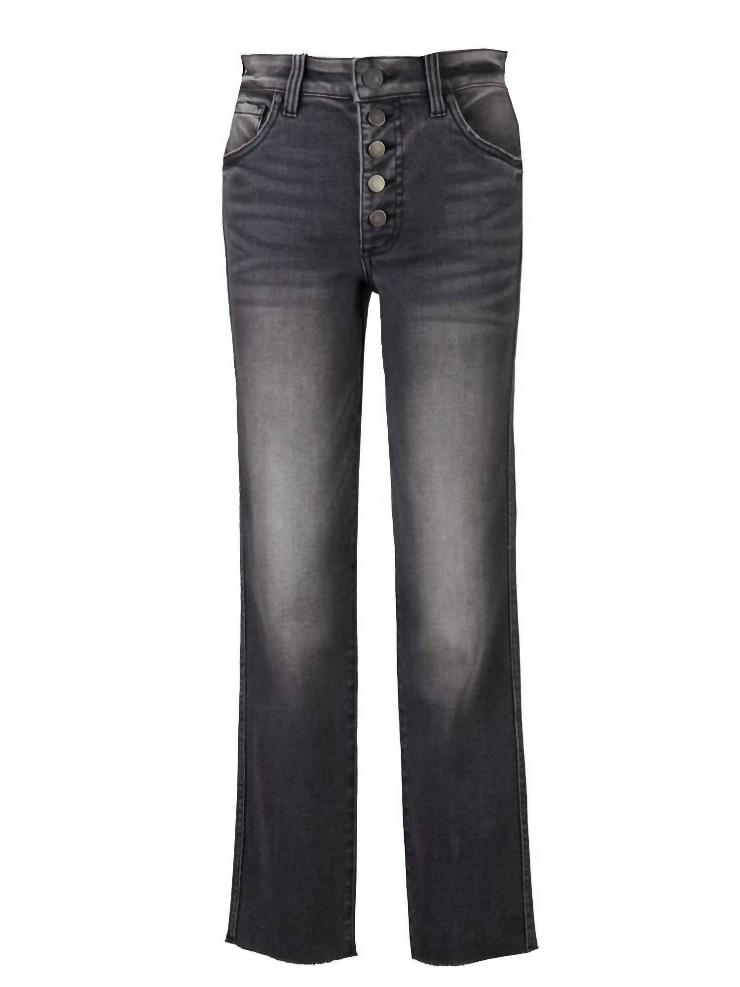 High-waist is here to stay and we especially love this style. Introducing the Rachael Hi Rise Mom Jean by KUT FROM THE KLOTH, a must-have for effortless style in "Emulate" color. Crafted with super stretch denim, this relaxed fit jean features a high rise and a straight leg silhouette with a delicate raw hem. Composition includes 66% Cotton, 30% Repreve Polyester, 3% Viscose, and 1% Spandex, complete with a flattering button closure and practical front pockets. Care for these eco-friendly jeans by machine washing cold inside out and tumble drying low, with an inseam of 26.25" and a rise of 10".