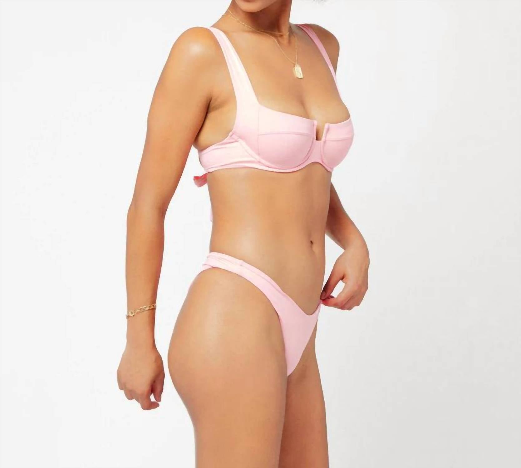 Dream of your next beach getaway in this cute little number. Pair with strappy sandals, a floppy hat, and an oversized tote to complete the perfect vacation look. The Cabana Bitsy Bikini Bottom by L*Space is your go-to for a minimalist beach day look in bright teal. Crafted from a blend of 80% Nylon and 20% Spandex, this cheeky coverage bottom features a seamless construction and a high leg cut that elongates your silhouette. With its solid pattern and mid-rise waist, it's perfect for summer revelries. Care instructions include hand washing and laying flat to dry, ensuring your swimwear stays in top condition.