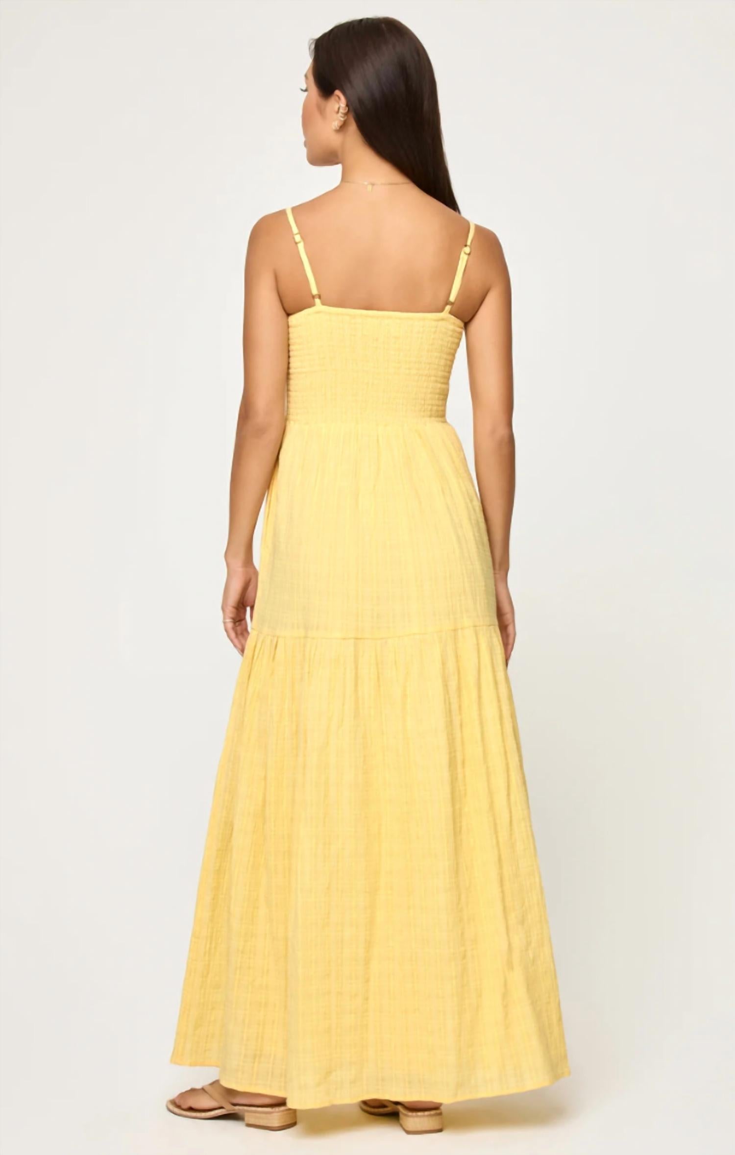 A maxi dress that is just as cute as it is comfortable. Embrace the vibes of coastal Spain with the Mallorca Maxi Dress by L*SPACE in a delightful Daisy color. This maxi features spaghetti straps for a breezy feel and is crafted from 100% cotton for exceptional breathability. The pull-on closure showcases a smocked bodice that accentuates a flattering fit, complemented by a flowy tiered A-line silhouette. For easy care, machine wash and lay flat to dry, ensuring this vacation-ready piece stays fresh for every outing.