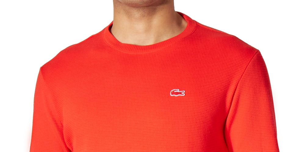 The essential loungewear of Lacoste wardrobe. This plain crew neck long-sleeve pajama shirt| playing with elegance| is branded by a tonal embroidered croc on the chest.| Relaxed fit| Crewneck| Tonal croc logo with white outline on chest| Cotton/polyester
