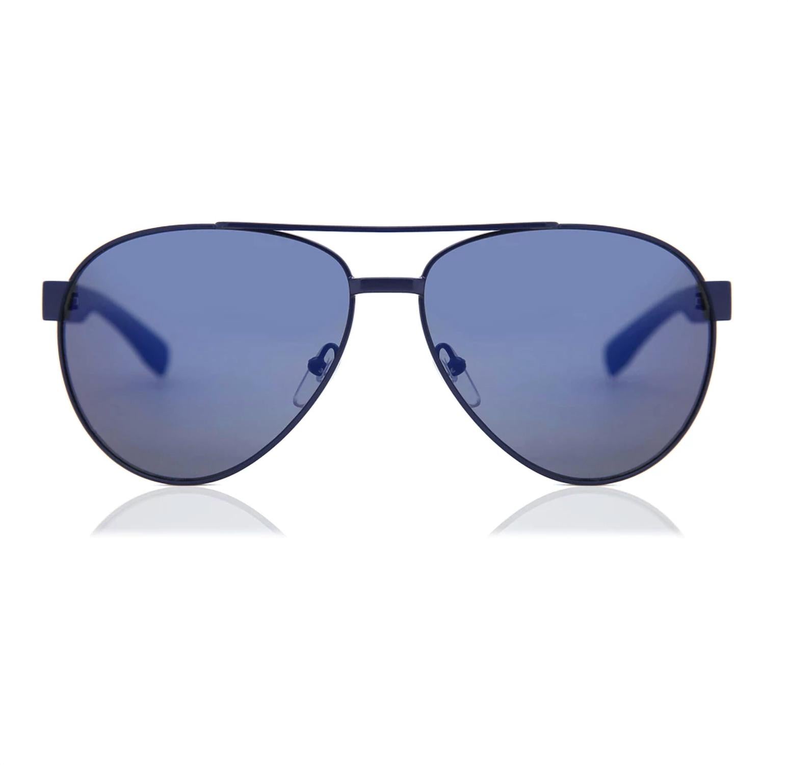 Introducing the Unisex L185S Sunglasses by LACOSTE, crafted for versatile style with a matte blue full-rim metal frame. Designed in a classic pilot shape, these aviator sunglasses feature purple polycarbonate lenses offering Category 3 UV protection. Lens Size: 60 mm, Lens Bridge: 14 mm, Arm Length: 140 mm. Perfectly suited for triangle face shapes, these stylish shades ensure comfort without compromising on fashion.