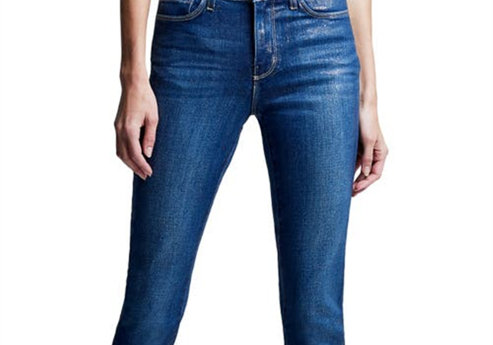 Metallic gold finish for an eye-catching look | Slim fit and cropped cut for a modern silhouette | Raw hems add a trendy, edgy detail
