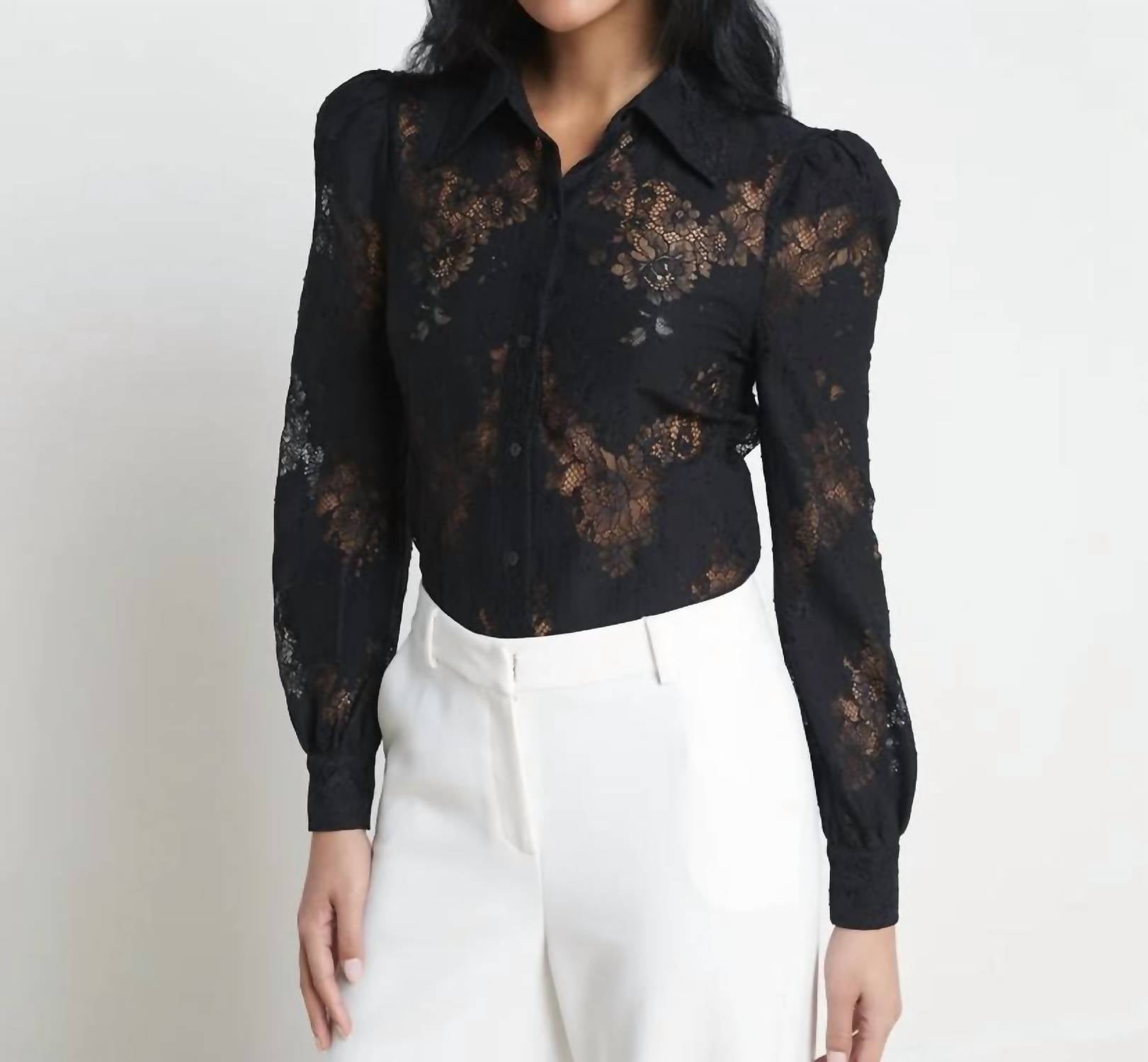 A versatile blouse that works from desk to dinner! Beautiful black lace blouse in soft, nylon cotton blend