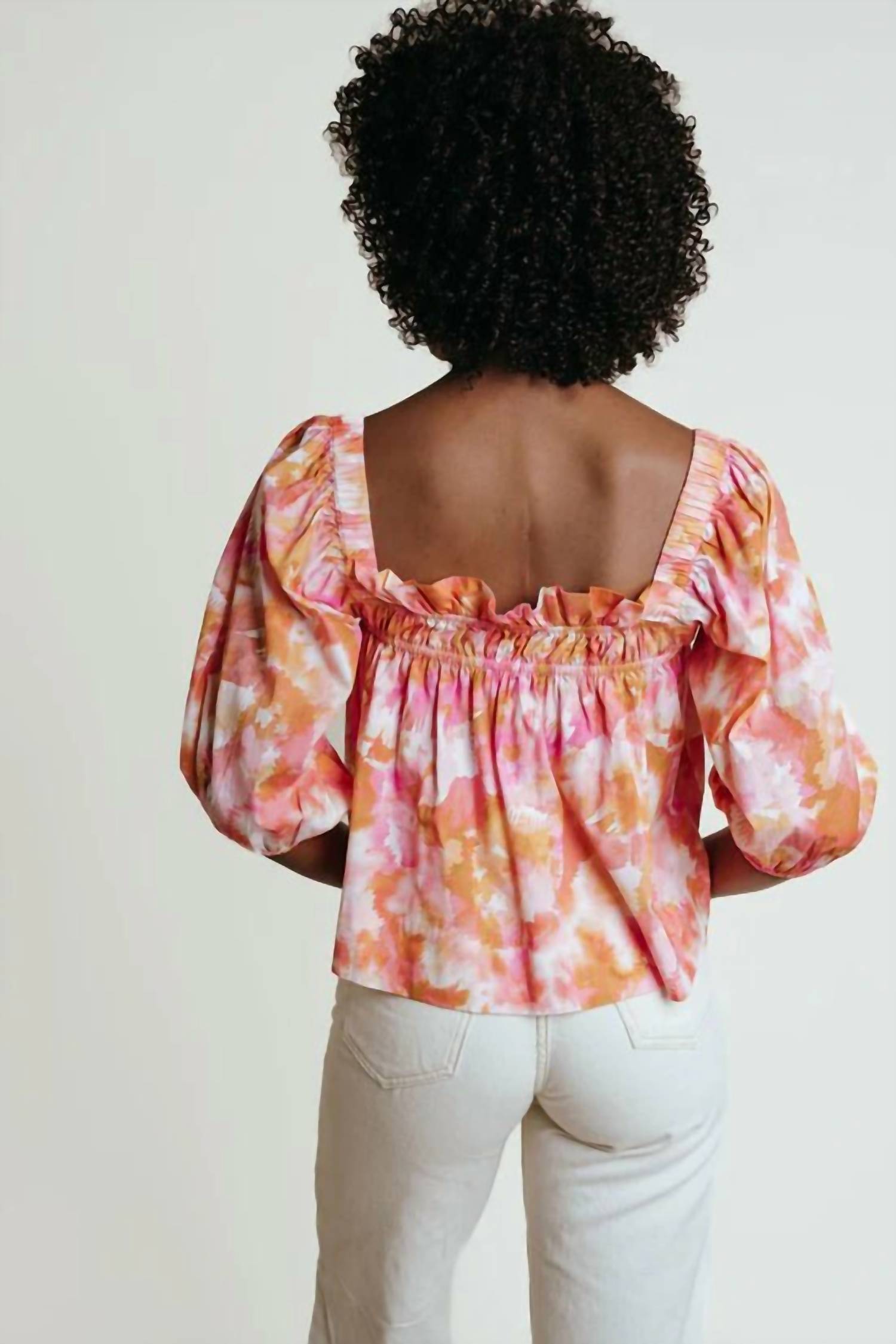 Elevate your spring wardrobe with the Bella Cotton Poplin Blouse by LAROQUE, a Boho Chic essential in a vibrant pink floral design. This women's blouse features stylish three-quarter sleeves with elastic cuffs and a charming ruffle square neckline for added elegance. Made from high-quality cotton poplin, it offers a pull-on closure for easy wear. Please note, this blouse is dry clean only. Perfect for vacation settings.