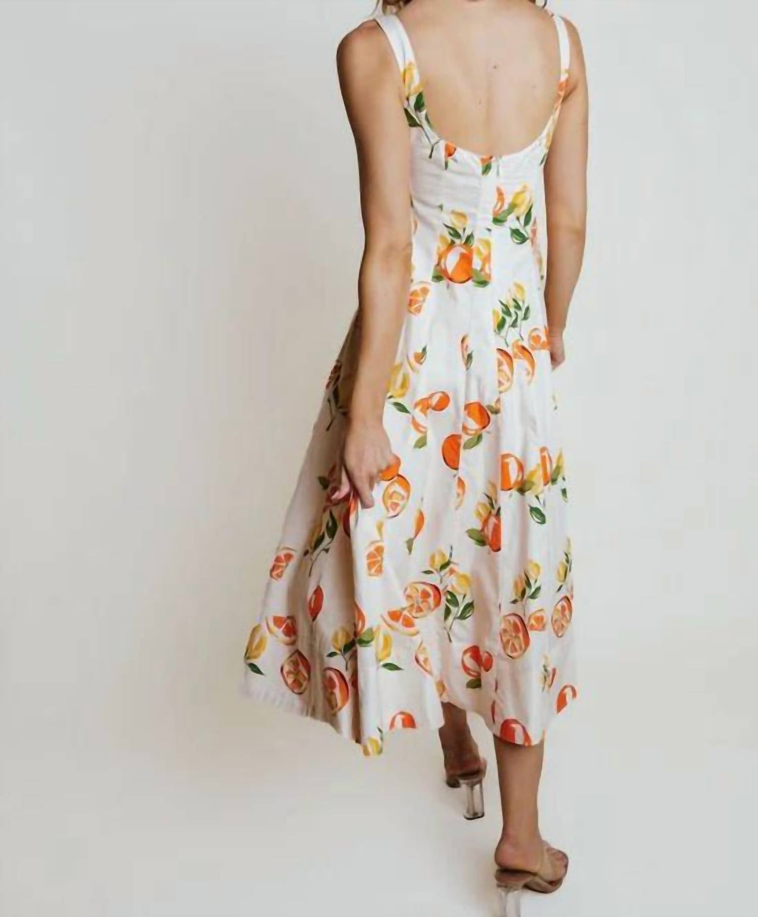Just add slides or mules and you are good to go. Slip into summer elegance with the Sophia Midi Dress by LaRoque, a stunning white A-line that celebrates your curves. This sleeveless dress features a stylish scoop neck and a fitted waist, offering effortless femininity for any occasion. Its patterned fabric and zip closure add a touch of maximalist flair, perfect for a vacation wardrobe. Care: Dry clean only.