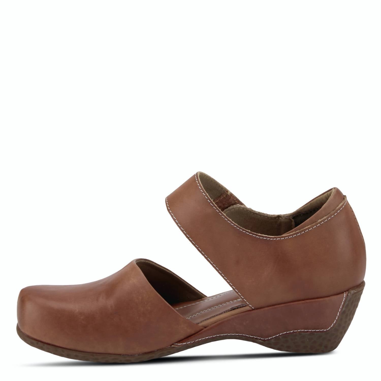 Introducing the Women's Gloss Mary Jane Shoes by L'Artiste, crafted to deliver both elegance and comfort in a Medium Brown hue. These shoes feature round toes and are constructed with hand-painted leather for a unique, artisanal finish. Designed with an adjustable strap and a leather-pieced wedge heel that stands at approximately 2 inches high, they offer a stylishly modern twist on the classic Mary Jane silhouette. Complete with a soft textile lining, synthetic leather padded insole, and durable rubber outsole, these shoes are imported and crafted for the sophisticated adult woman.
