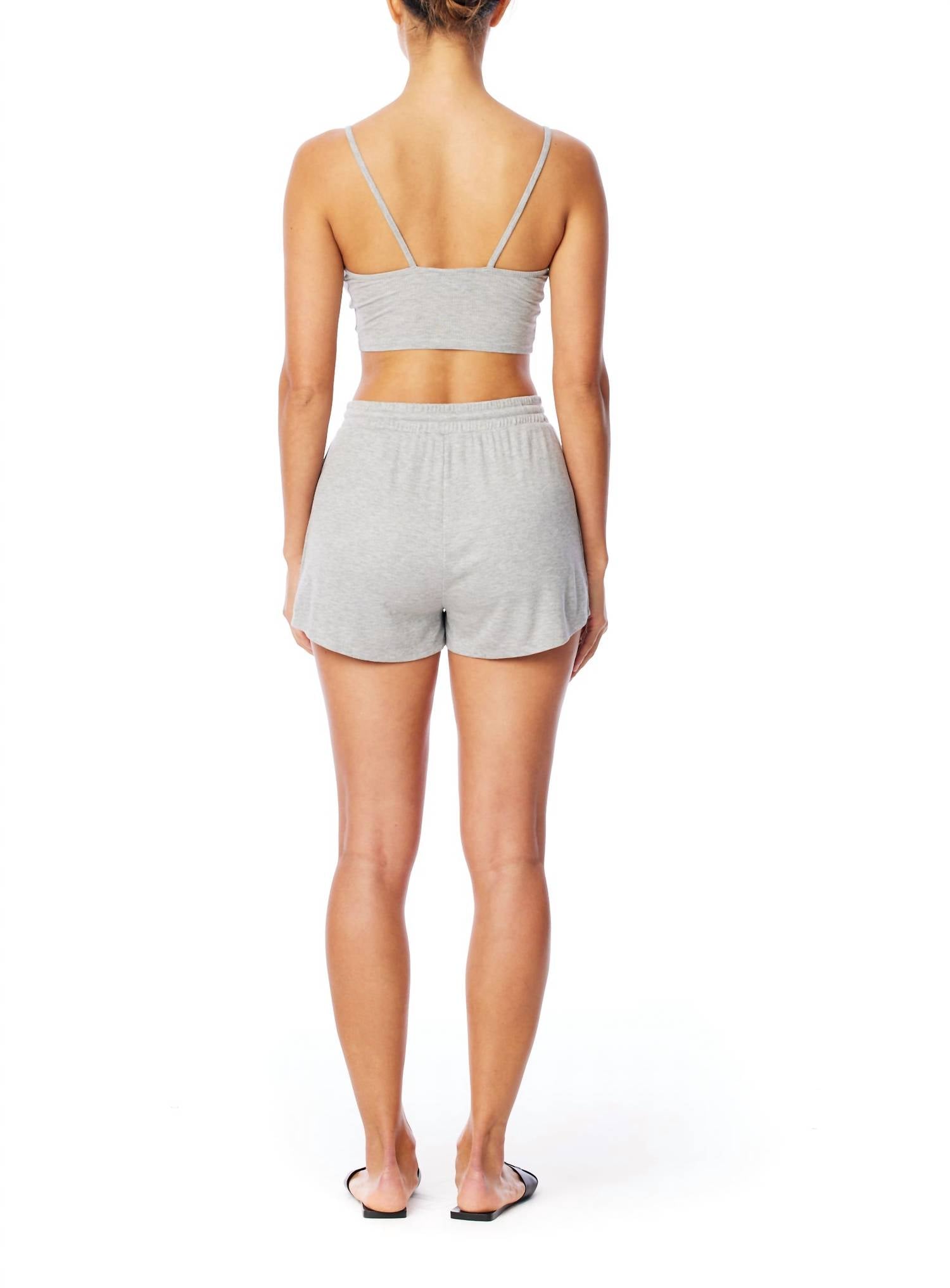 Fit to perfection, we love these high-waist shorts and you will too. Elevate your athleisure wardrobe with the Penny Ribbed Shorts from LBLC THE LABEL, a perfect blend of comfort and style in Heather Grey. These women's mid-rise shorts feature an elasticized drawstring waist and thigh-length relaxed fit for effortless movement, suitable for summer workouts. Designed with ribbed texture, they are crafted from 96% Rayon and 4% Spandex, ensuring a soft and stretchy feel. Care instructions: Hand wash in cold, line dry, iron at low heat; pull-on closure simplifies wear.