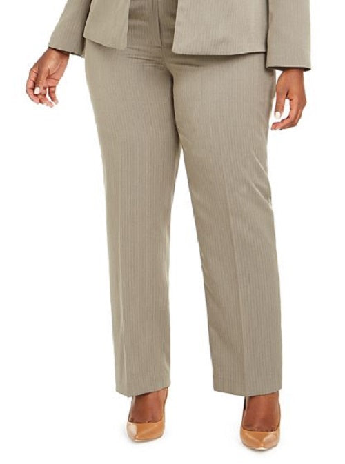 Le Suit Women's Straight Leg Tonal Striped Pants Suit Brown Size 14W