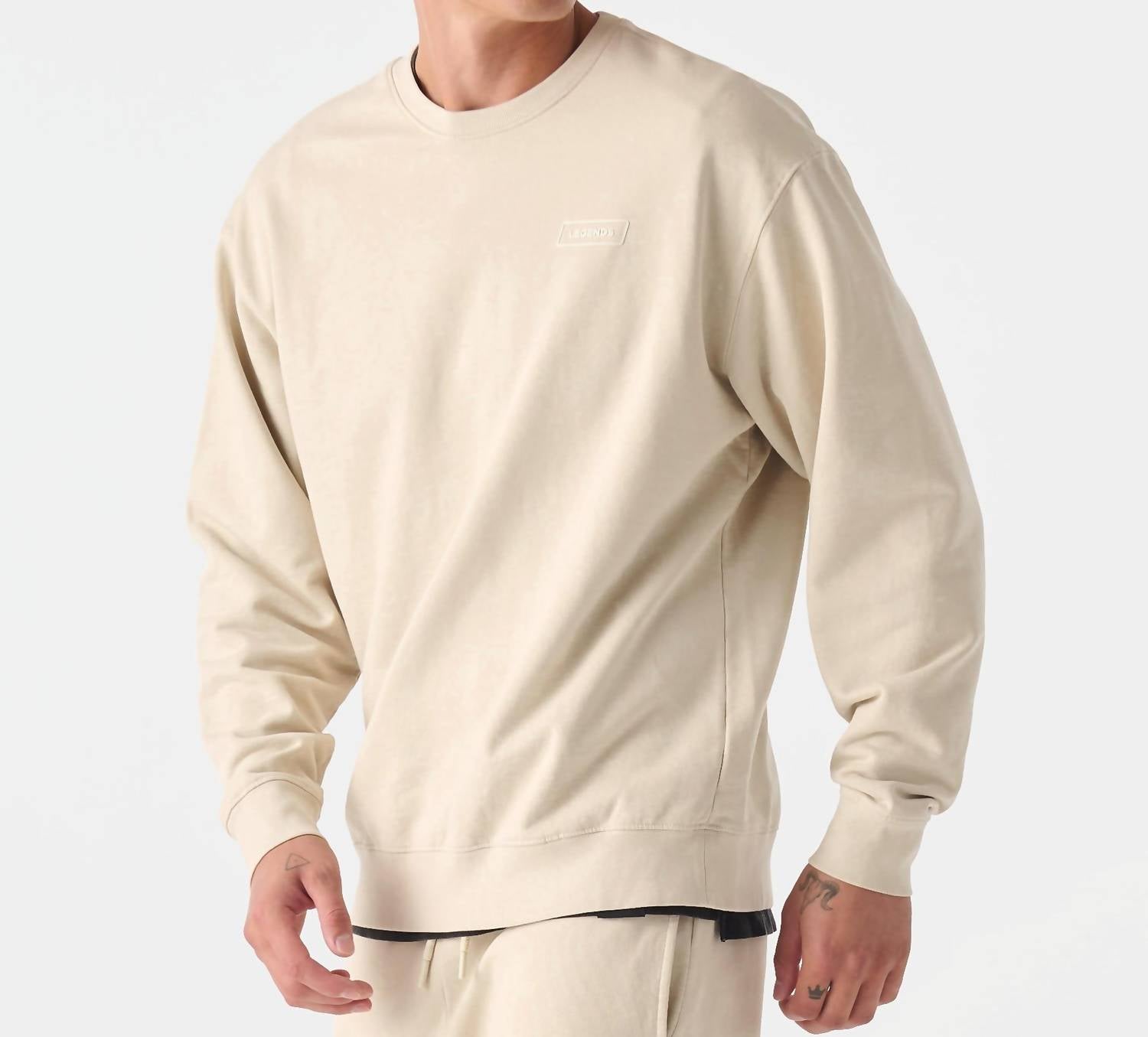 Discover the Fairfax Crew Sweatshirt by LEGENDS, a cozy must-have for your streetwear collection. Featuring long sleeves and crafted entirely from heavyweight cotton fleece, this oversized piece is made in the US and designed for comfort and style. With a pull-on closure and a crewneck, it boasts an embroidered sleeve patch and ribbed details. Machine wash, pre-wash recommended to reduce lint. 100% Heavyweight Cotton Fleece.