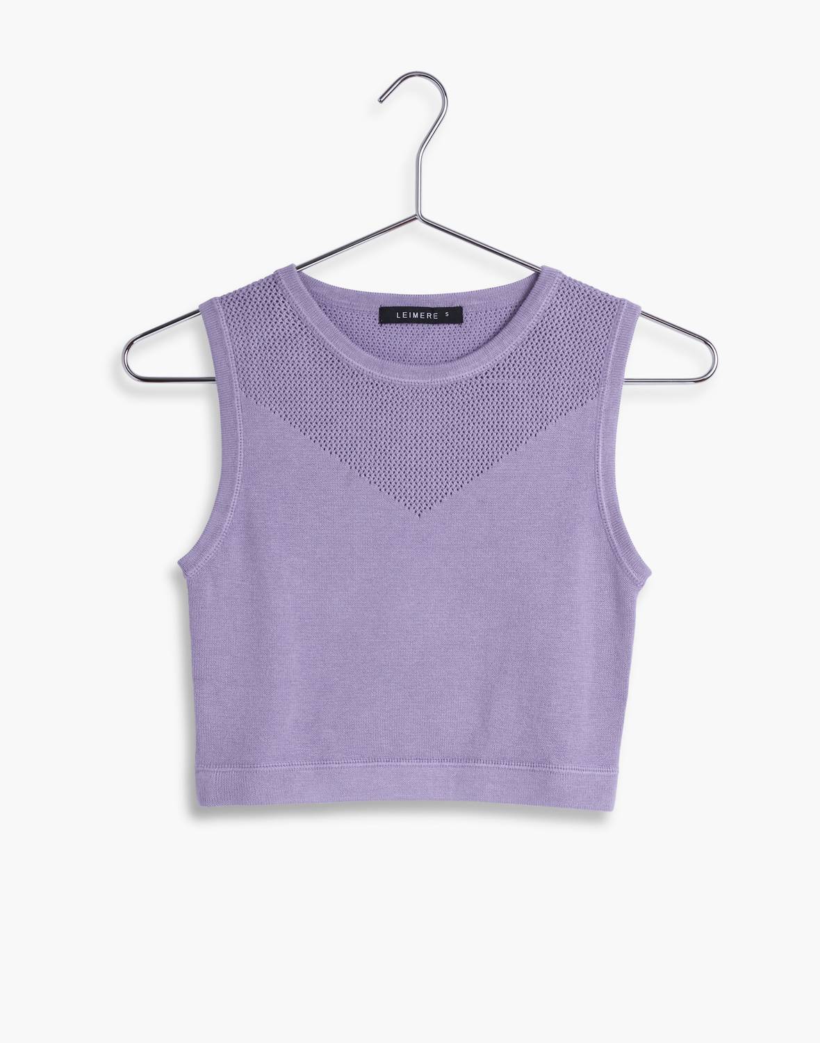 Fit, fabric and functionality. This tank top checks all the boxes. Relax in style with the Huntington Crop Tank by LEIMERE, designed for both studio workouts and leisure. This lilac tank top is sleeveless with a crewneck and is made from a luxurious blend of 50% Modal, 25% Cotton, 15% Nylon, and 10% Cashmere. It features a comfortable pull-on closure and is imported, showcasing a cropped fit with measurements of 27.5" chest and 15" length. For care, hand wash and lay flat to dry, or opt for a gentle machine wash and tumble dry low. Model is 5'9" and wearing a size small.