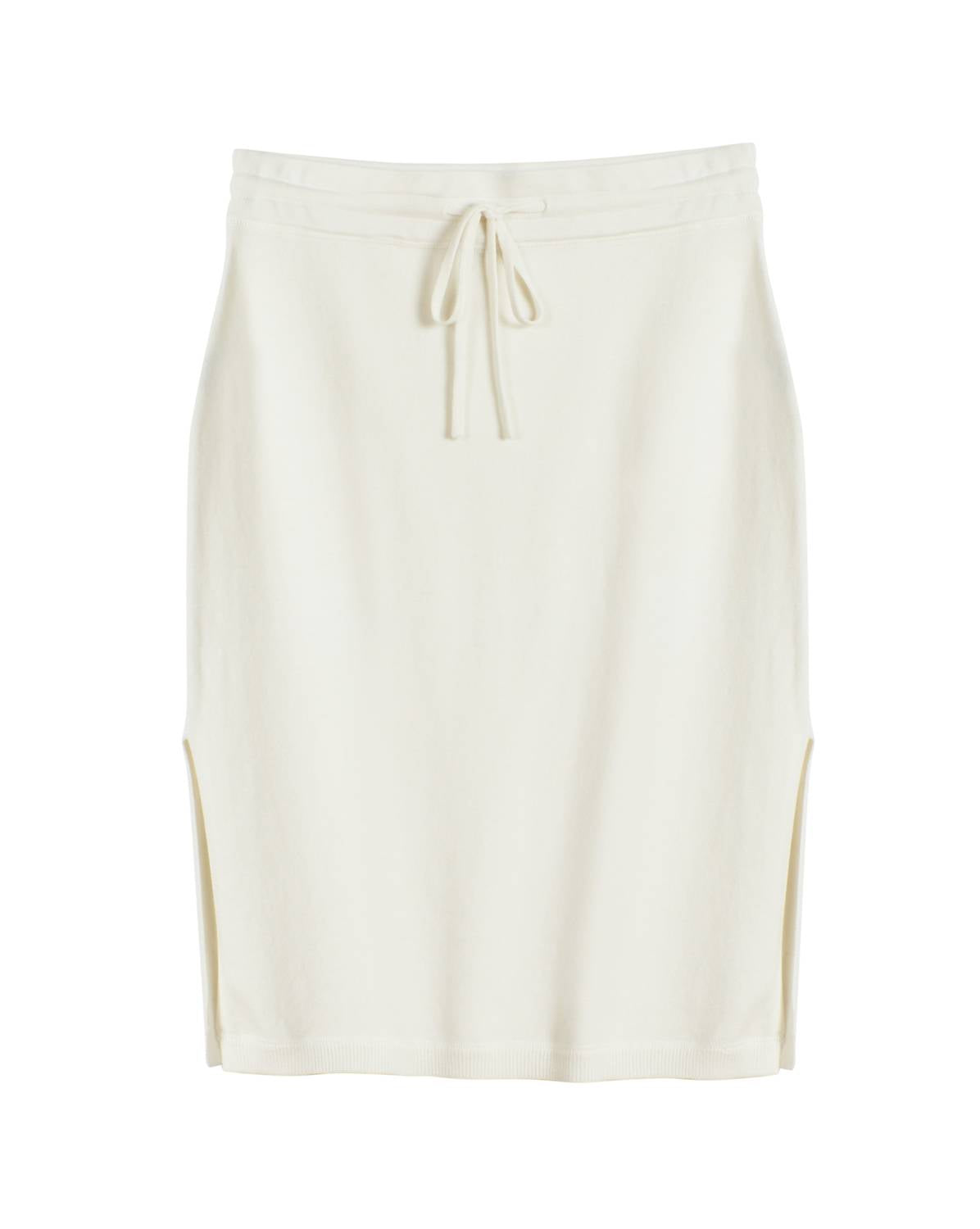 Show off just the right amount of skin in this beautifuly designed midi length skirt. Elevate your warm-weather wardrobe with the Women's Malibu Skirt by LEIMERE in Marshmallow. This solid midi skirt comes with a cozy drawstring waist and stylish side slits, making it perfect for a spring dinner party. Made from a luxurious blend: 50% Modal, 25% Cotton, 15% Nylon, and 10% Cashmere. Imported with a pull-on closure for effortless wear. Care: Hand wash and lay flat to dry, but it can also be machine washed on a gentle cycle with like colors, tumble dry low. Model is 5'10" and wearing a size Small (29" Waist, 23.75" Length).