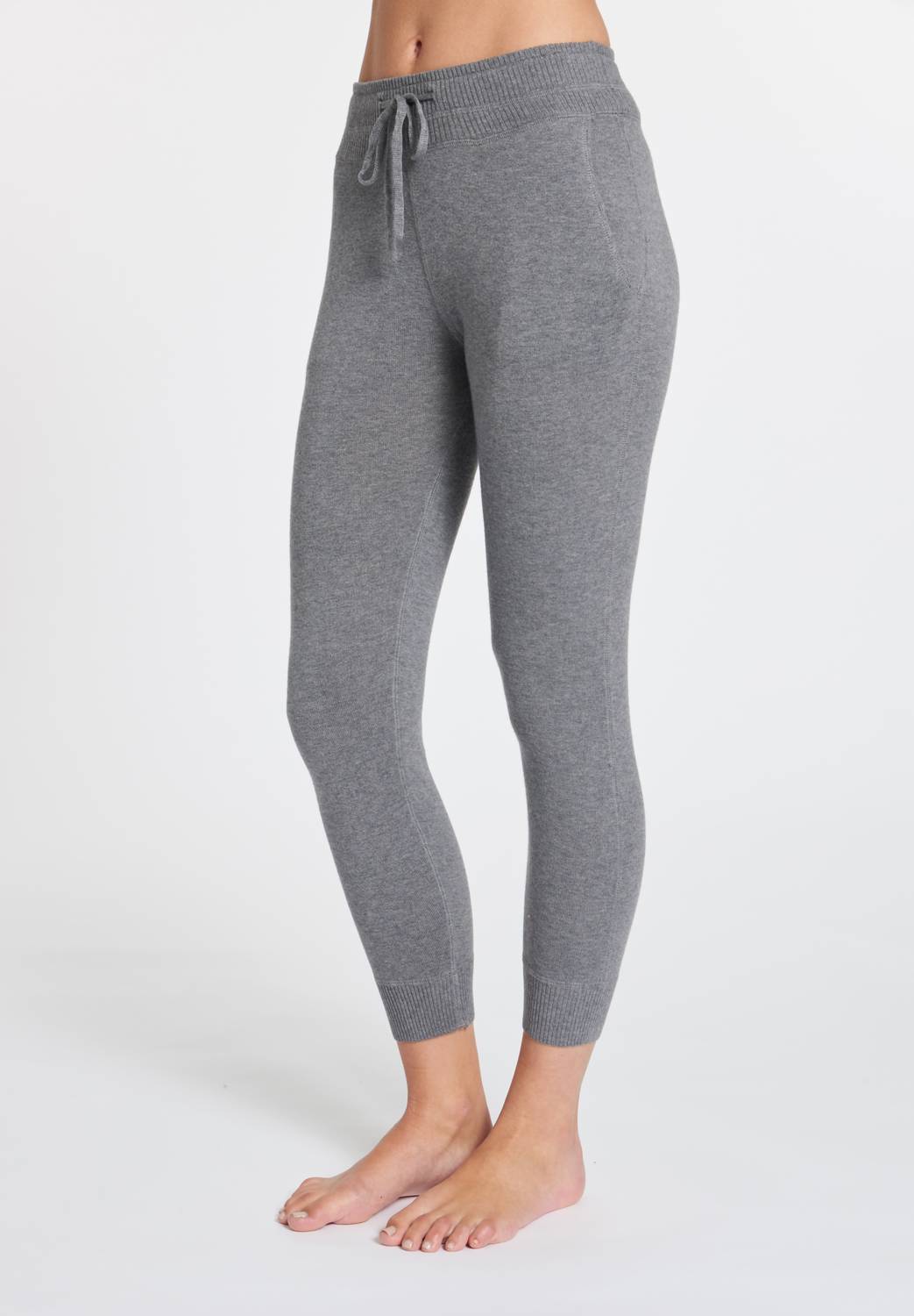 Introducing the Women's Promo Jogger by LEIMERE in a chic grey hue, crafted for both comfort and style. Designed with a flattering 7/8 length that hits just above the ankle, this jogger is made from a luxurious blend of 50% Modal, 25% Cotton, 15% Nylon, and 10% Cashmere. The solid pattern and pull-on closure make it an ideal choice for fitness or workout sessions. Care: Hand wash and lay flat to dry, or opt for a gentle machine wash with like colors and tumble dry on low. Model is 5'10" wearing a Small (25" inseam, 9" leg opening, 10" front rise, 13.25" back rise).
