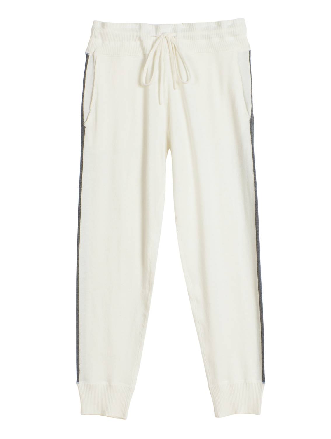No gym necessary for these cool-girl joggers. Introducing the Somerset Jogger by LEIMERE, designed for ultimate comfort in a charming Marshmallow hue. These joggers showcase front pockets, a track stripe detail, and a drawstring waist for a relaxed fit. Made from a luxurious blend of 50% Modal, 25% Cotton, 15% Nylon, and 10% Cashmere, they are imported with precision craftsmanship. Care instructions include either hand washing and laying flat to dry or machine washing on a gentle cycle with like colors, followed by a low tumble dry. Model is 5'10" and wears a size small with a 24" inseam, 8" leg opening, 10" front rise, and 13.25" back rise.