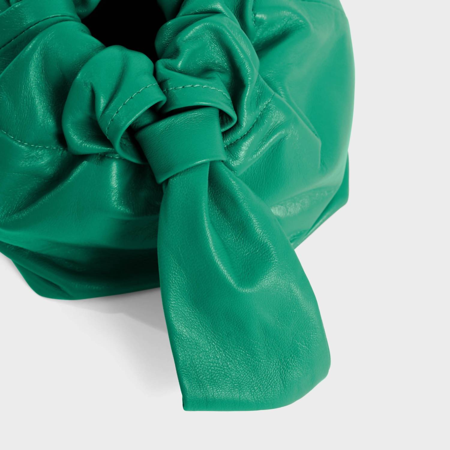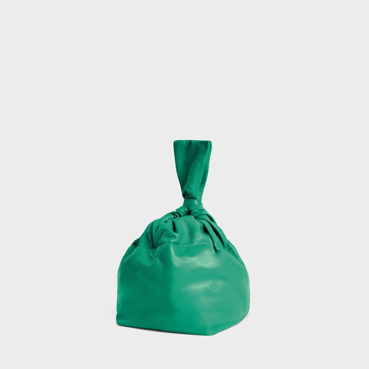 Small in size but a total statement maker. Introducing the Women's Mariposa Twist Clutch Handbag by Lemiz in a striking silver hue, handcrafted from supple Italian lamb leather. Thoughtfully designed with a wristlet strap, this clutch ensures hands-free convenience, making it an ideal travel companion. Its soft silhouette is complemented by a cotton canvas lining and an inside pocket for organization, comfortably fitting an iPhone Max. Handcrafted in Los Angeles, this mini bag has dimensions of 6.5" width, 6.5" depth, and 7" height, perfect for carrying your essentials.