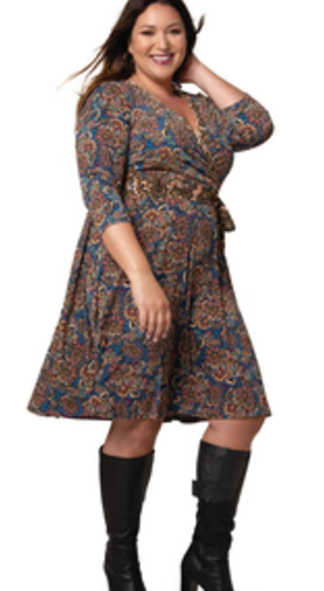 Leota Women's Floral Wrap Dress Blue Size 2X