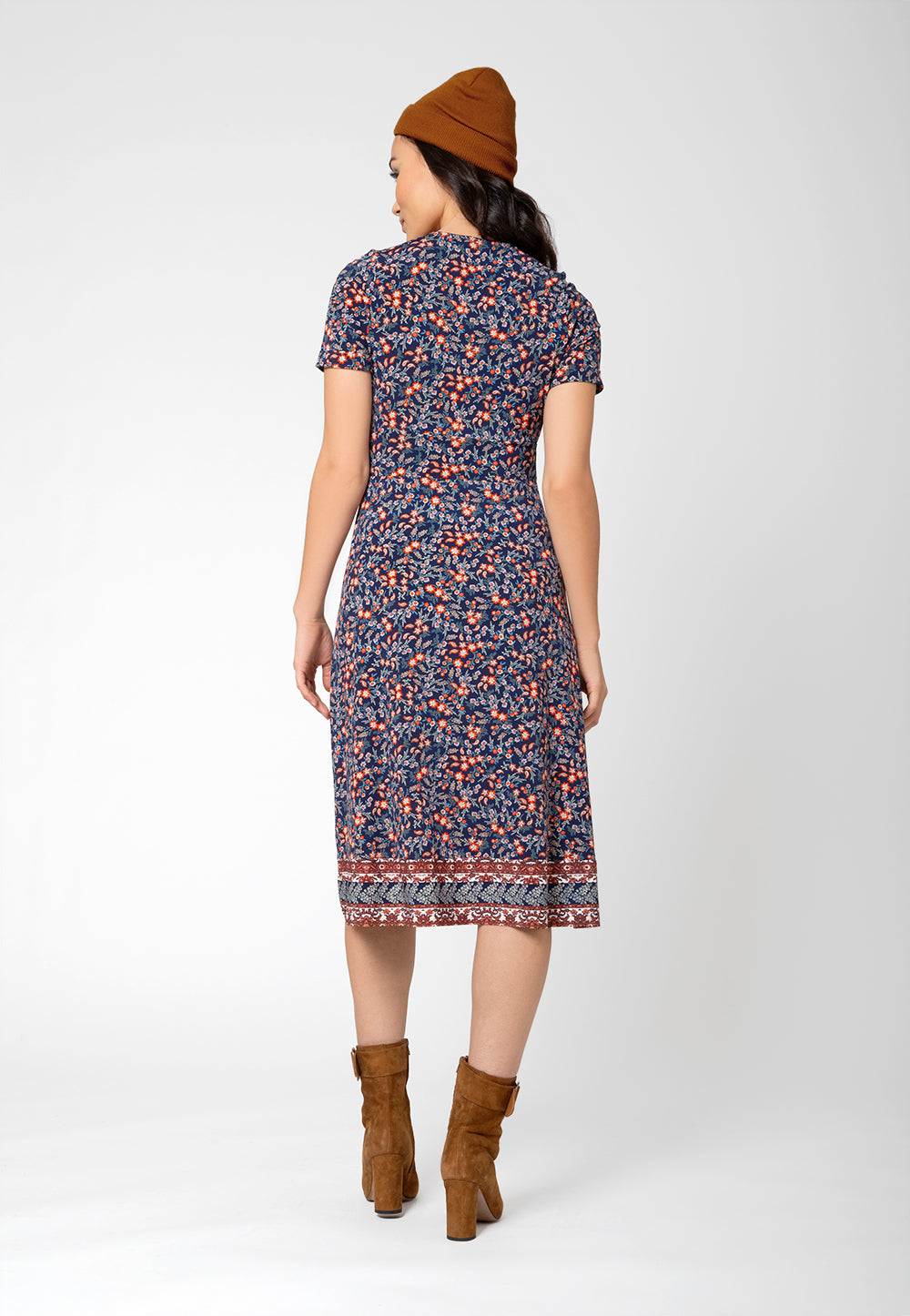 Our Francesca dress is the ultimate effortless silhouette| It's fitted in the bodice with chic details like rolled short sleeves| button accents| and a midi-length skirt
