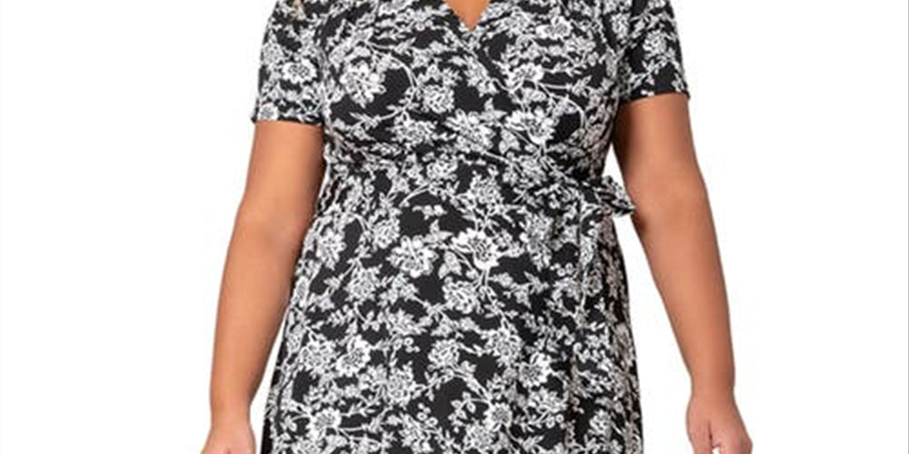 Leota Women's Monique Floral Jersey Faux Wrap Dress White Size 2X