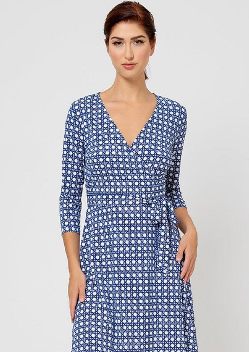 Leota Women's Perfect Wrap 3/4 Sleeve Dress Blue Size Small