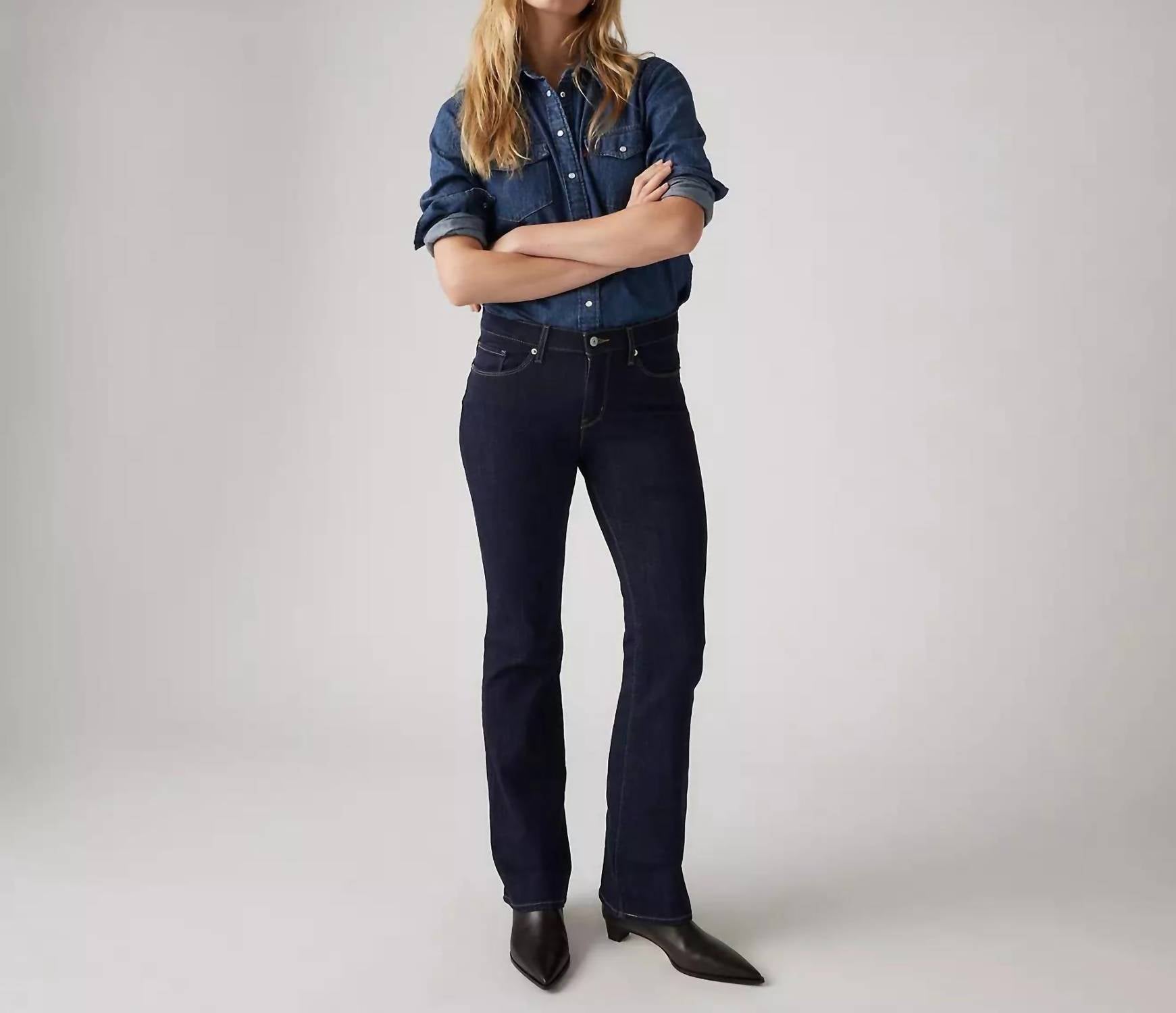 If you're looking for boot-cut, this is the jean for you. Levi's Classic Mid Rise Boot Cut Jeans in Island Rinse offer a timeless '90s vibe with their solid pattern and classic fit. Made from a comfortable cotton blend, these jeans feature a mid rise with a floor-grazing, versatile bootcut leg. They come equipped with functional pockets and a zip closure, designed to complement your curves while retaining their shape. Perfect for any occasion, these jeans are effortlessly maintained with machine wash instructions.
