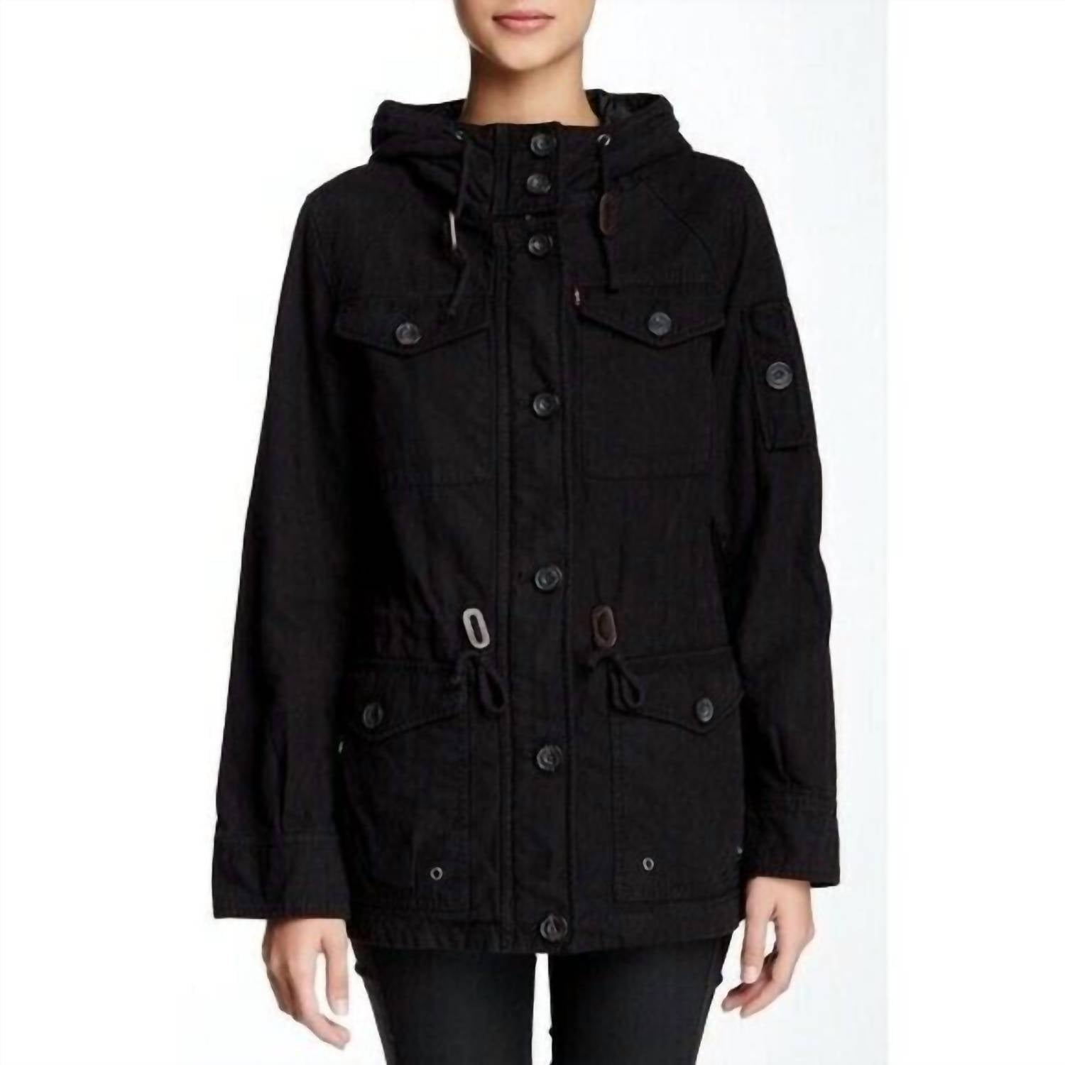 The coolest, most versatile utility jacket. Match it with your favorite pair of denim or throw it over any day dress. Experience the rugged versatility of the LEVI'S Cotton Hooded Insulated Military Jacket, designed for both style and functionality. This long-sleeve jacket is crafted from 100% cotton with a 100% polyester lining and measures 28 inches in length, offering a comfortable and warm fit. Featuring a stand-up collar with an attached hood and drawstring, it includes a practical front zip and button closure with button cuffs, and a convenient button pocket on the left sleeve. Complete with a drawstring waist and four front pockets, this utility jacket is machine washable for easy care and effortlessly combines classic military styling with modern practicality.